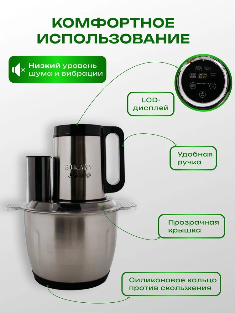Измельчитель кухонный, Чоппер 6 лезвий, сенсорный, 6 в 1 информация:
