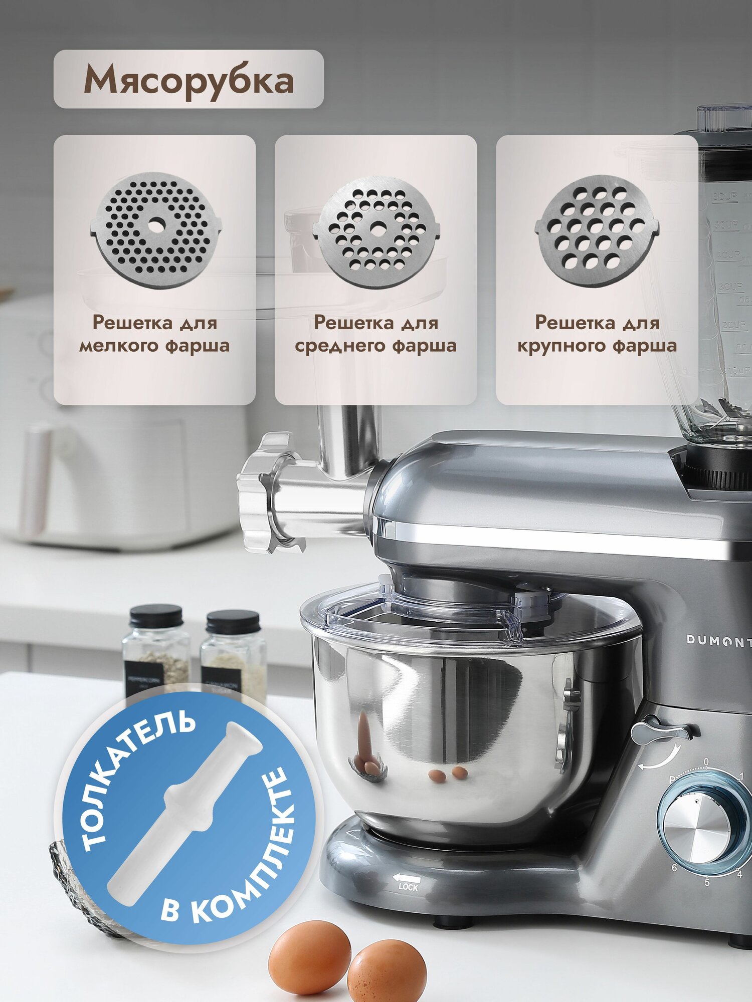 Отзывы на Кухонная машина Dumont DMSM-2004, 6 скоростей, чаша 5,5 л, чаша блендера - стекло