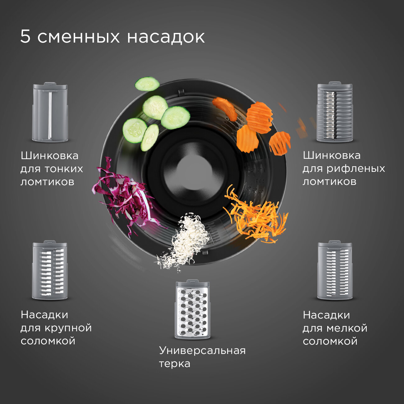 Мультирезка РЕДМОНД FP618, измельчитель, шинковка, терка, 5 насадок