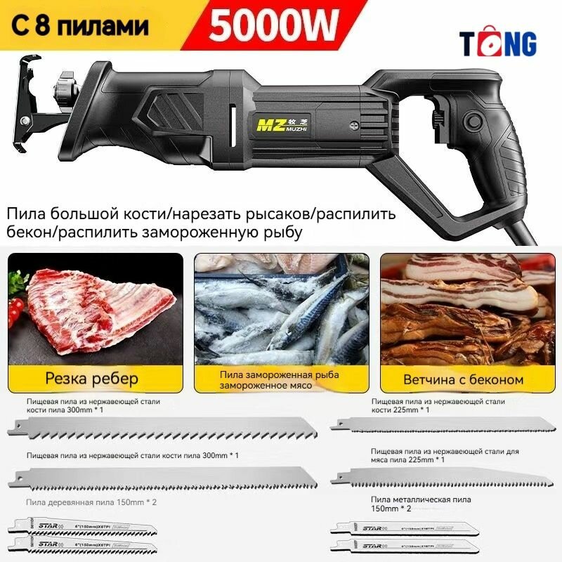 5000W, Пила для мяса и костей электрическая,8 запасных пильных полотен-TONG информация: