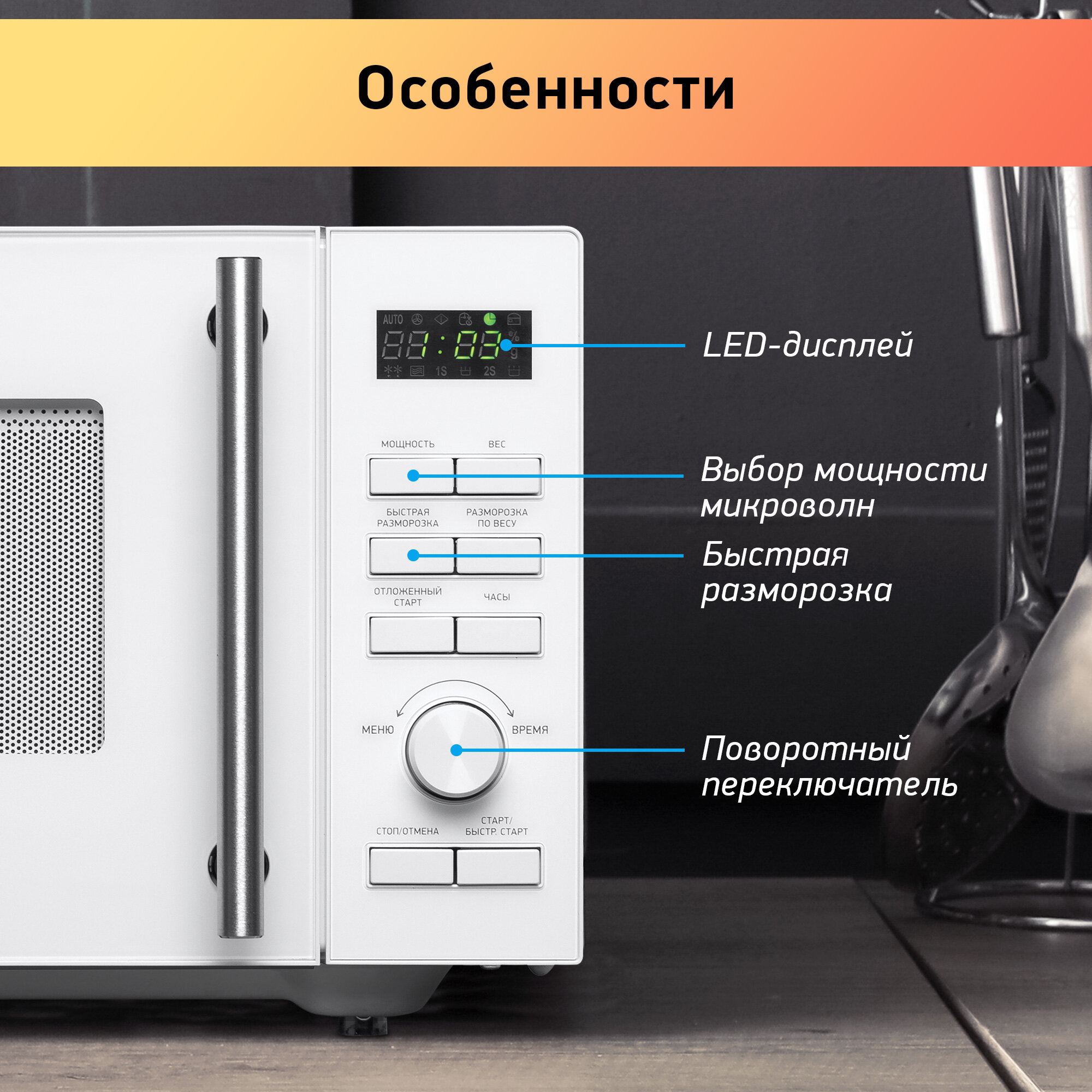 Микроволновая печь BBK 23MWS-951T/W белый, объем 23 л, мощность 900 Вт информация: