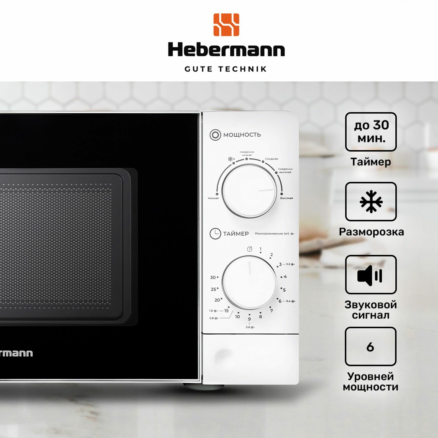 Микроволновая печь встраиваемая HBMWO 20.01 BL, Механическое управление, объем 20л, отделка-акриловое стекло, таймер.