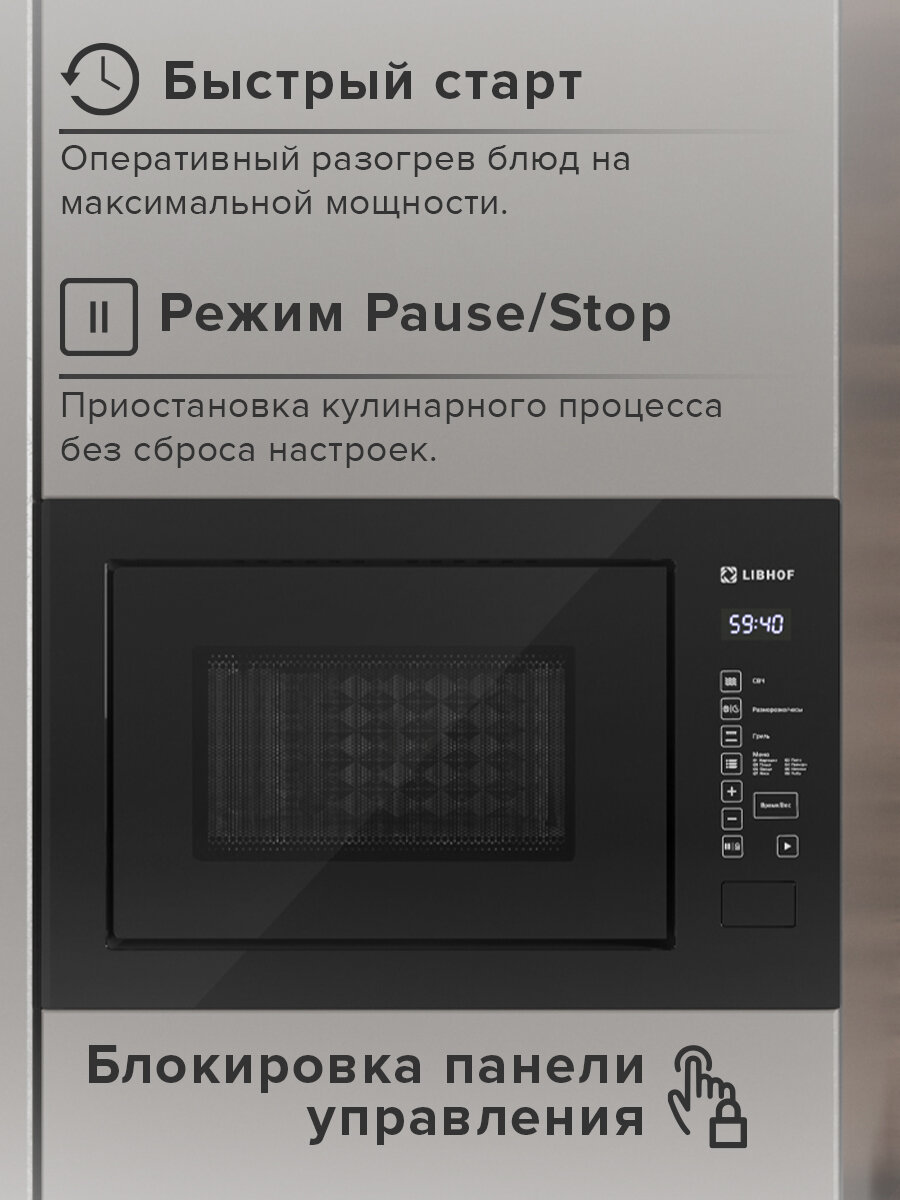 Встраиваемая микроволновая печь Libhof MOS-3225 black информация: