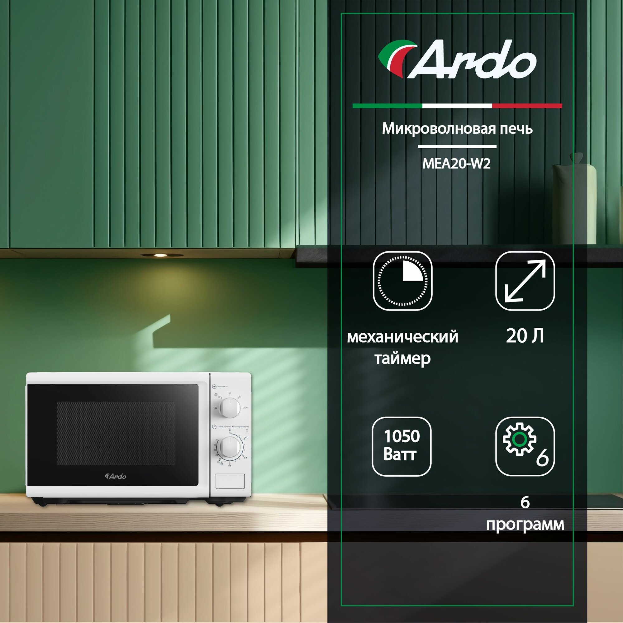 10 цен на Микроволновая печь Ardo MEA20-W2 мощность 700 Вт, 20 л, микроволновка с функцией разморозки биокерамика