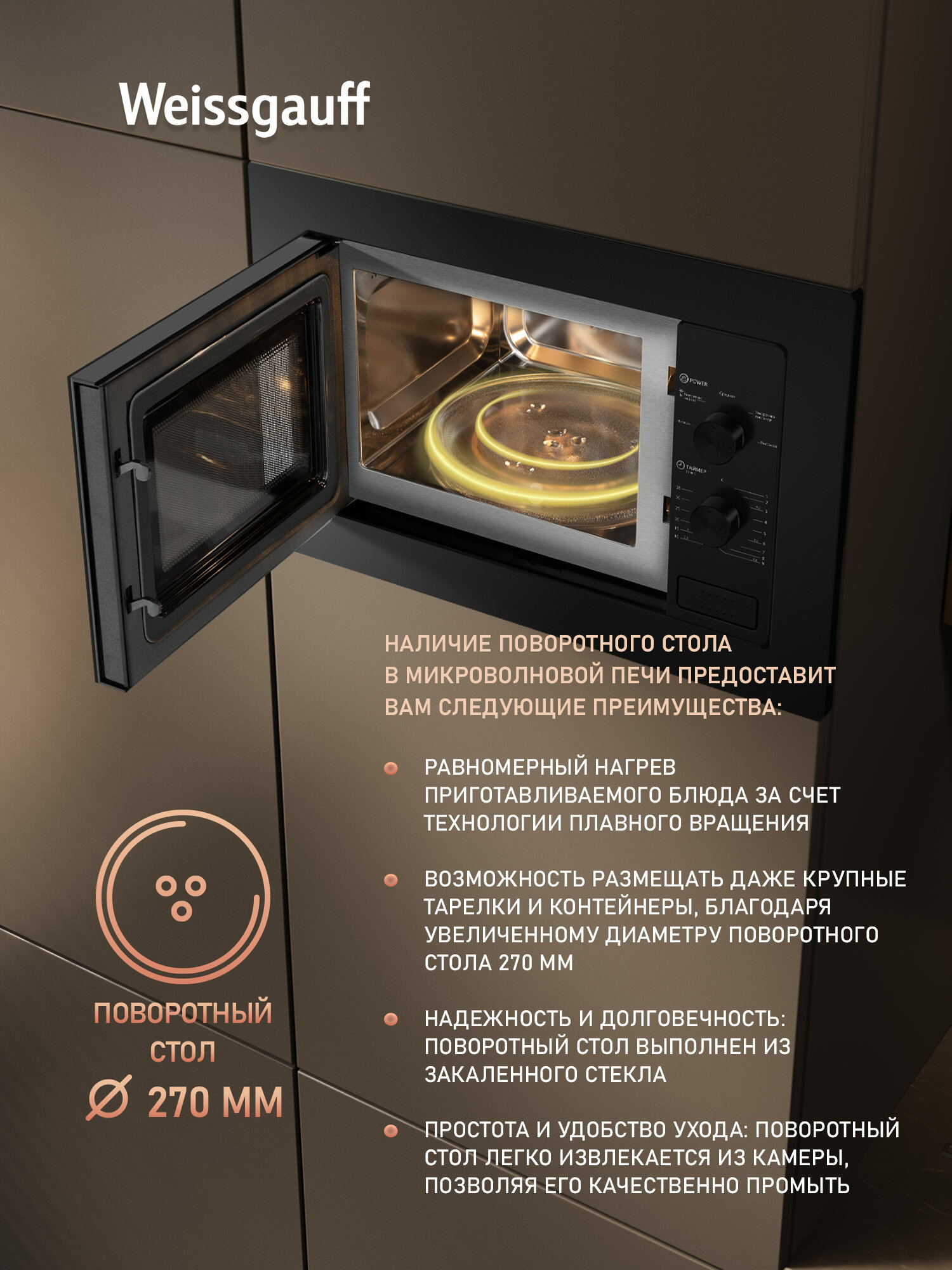 Встраиваемая Микроволновая печь Weissgauff HMT-2026 , Объем 21 литр информация: