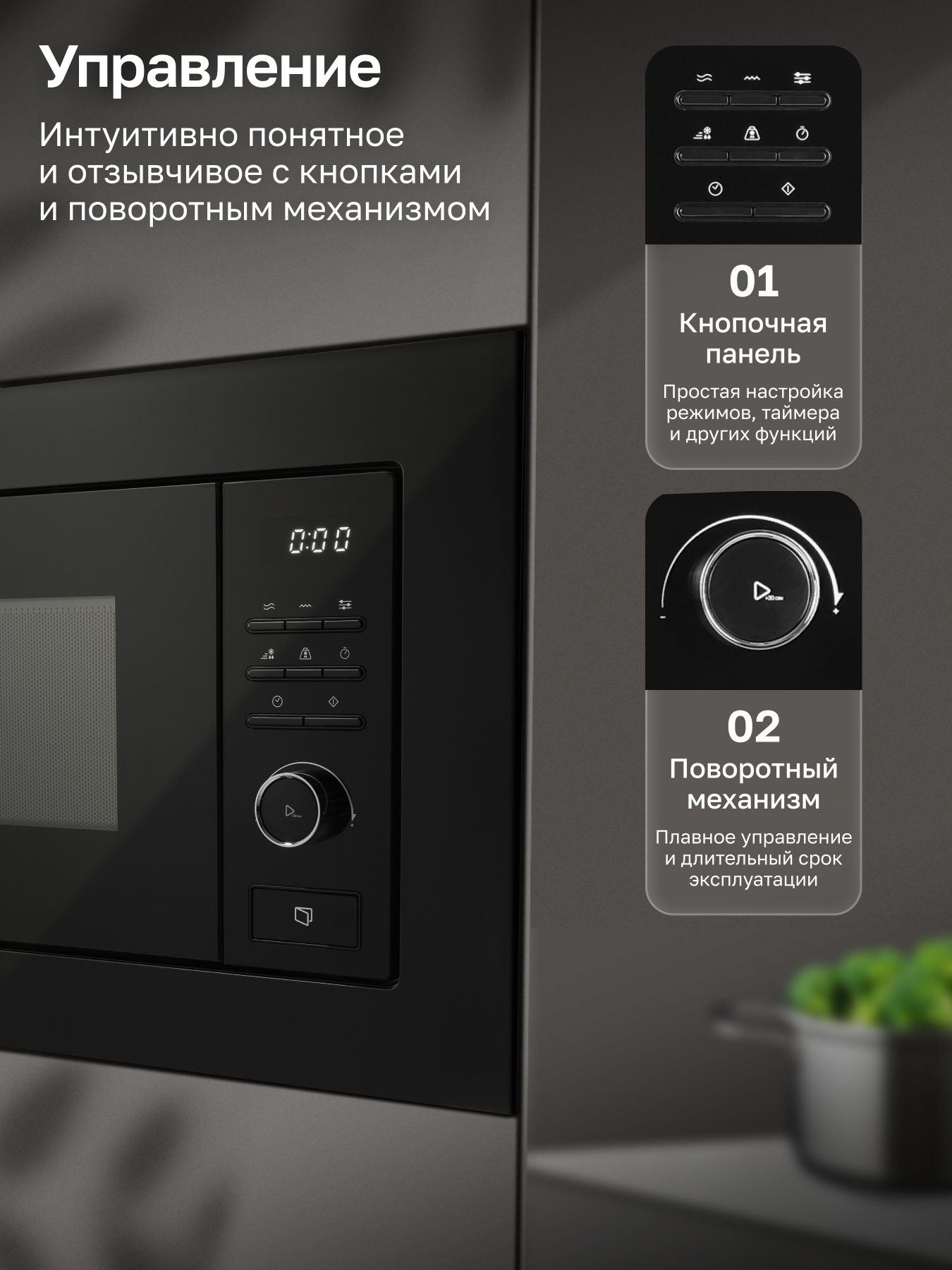 | Вид управления | кнопки, поворотный механизм |