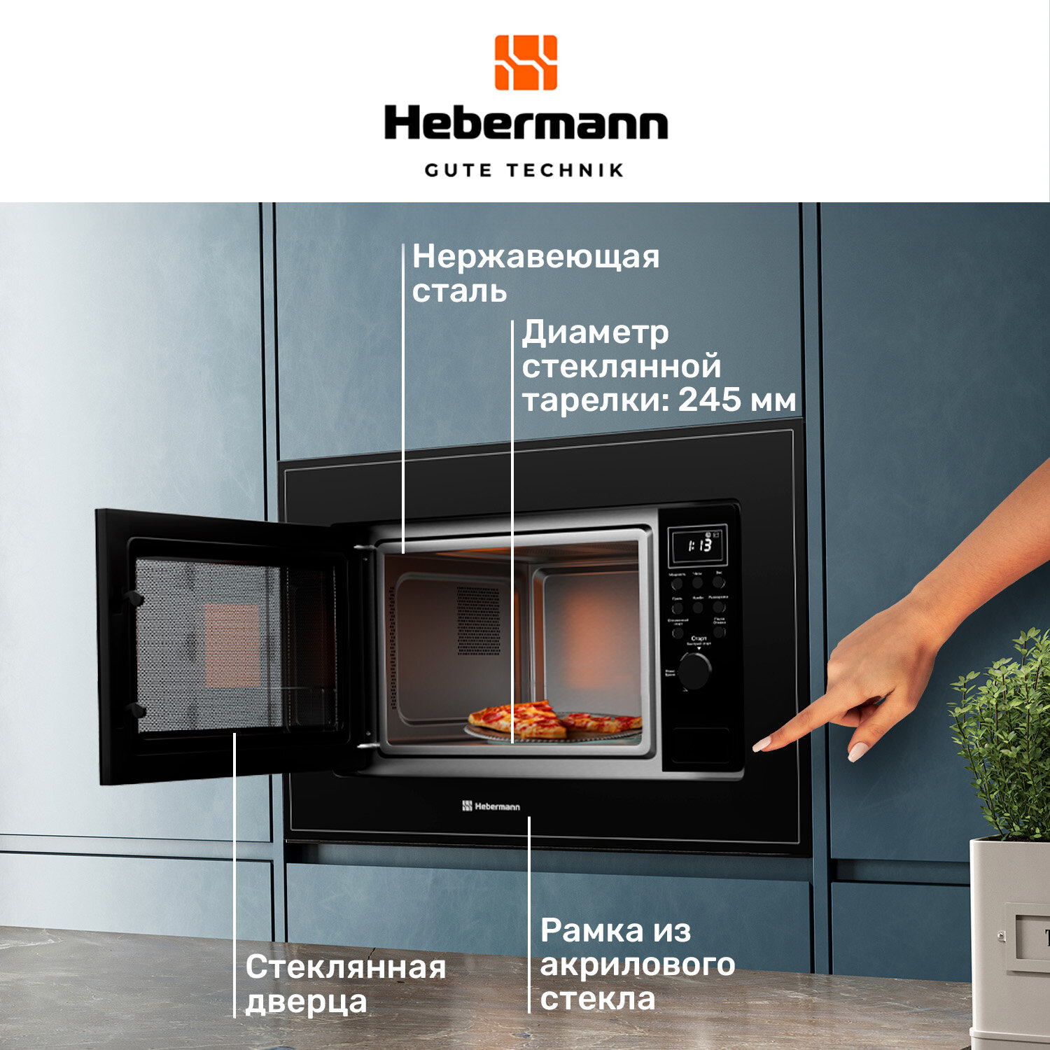 Отзывы на Микроволновая печь встраиваемая HBMWO 20.02 BL, электронное управление, объем 20л, отделка-акриловое стекло, функция гриль, таймер.