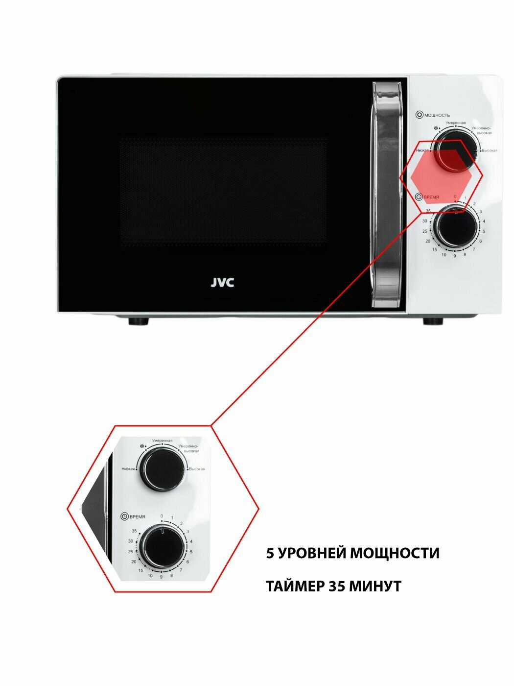 10 цен на Микроволновая печь JVC JK-MW150M с зеркальным стеклом 20 л, таймер 35, 5 уровней мощности, авторазмораживание, 700 Вт