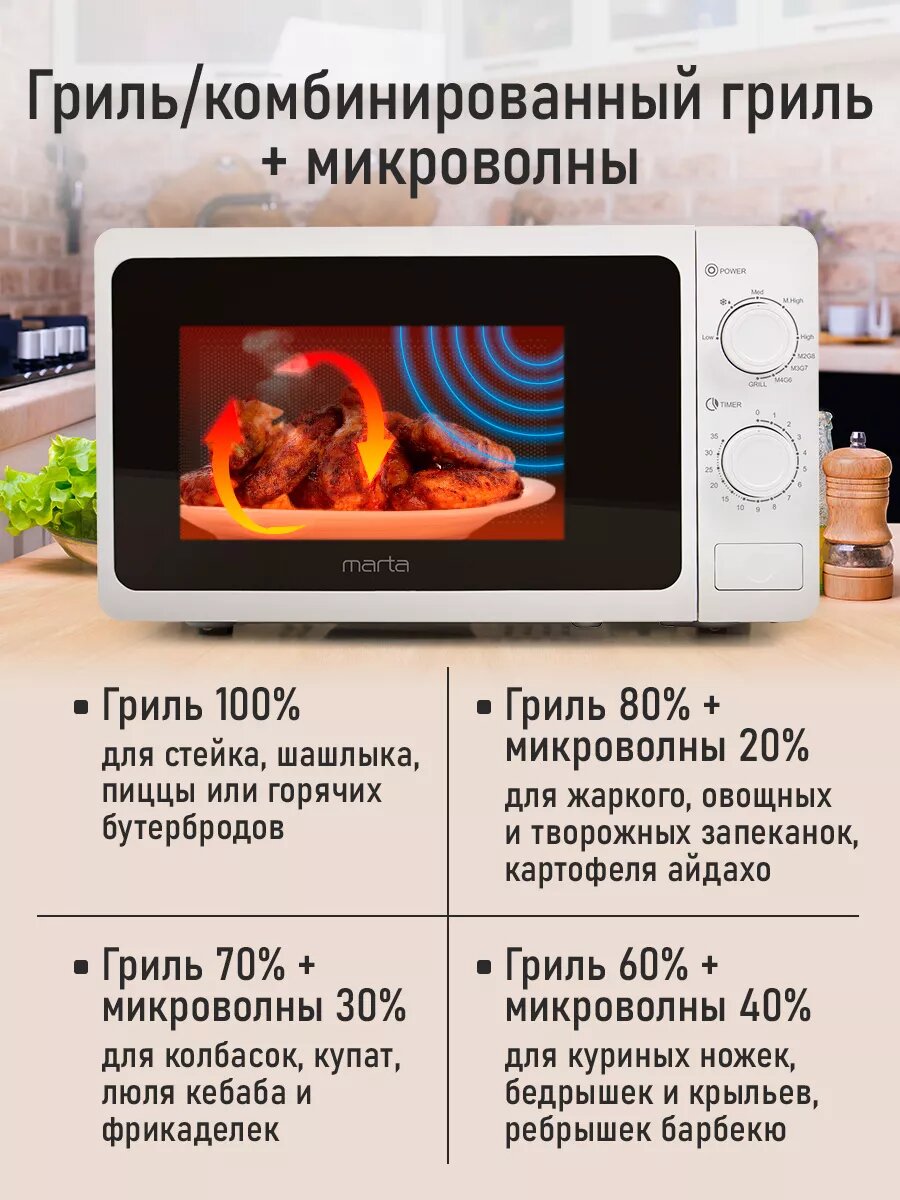 Отзывы на Микроволновка микроволновая печь СВЧ MARTA MT-MW4702B гриль белый 23 л