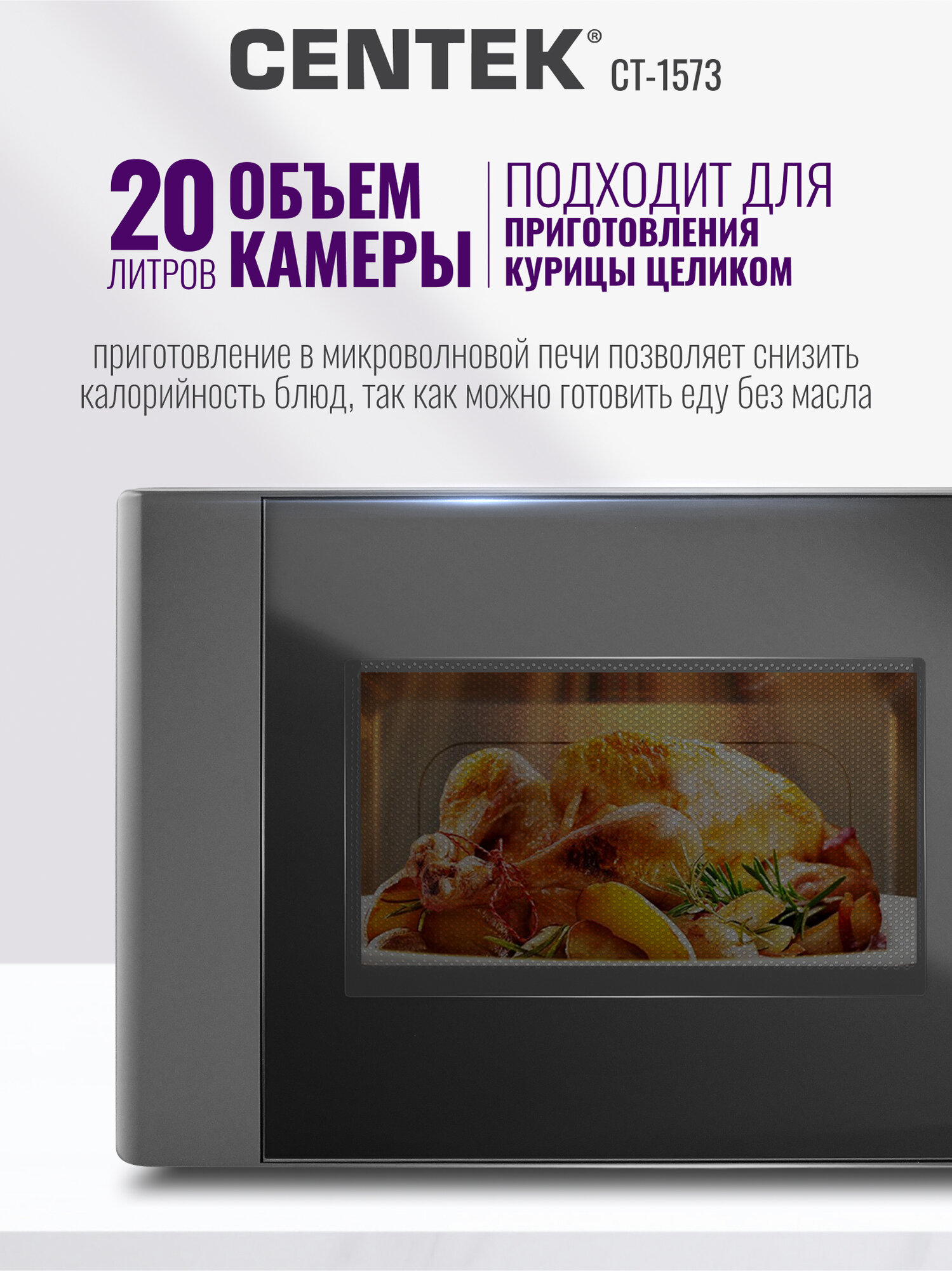 Отзывы на Микроволновая печь CENTEK CT-1573: без поворотного стола, 20л, легкая очистка, серый графит, микроволновка СВЧ