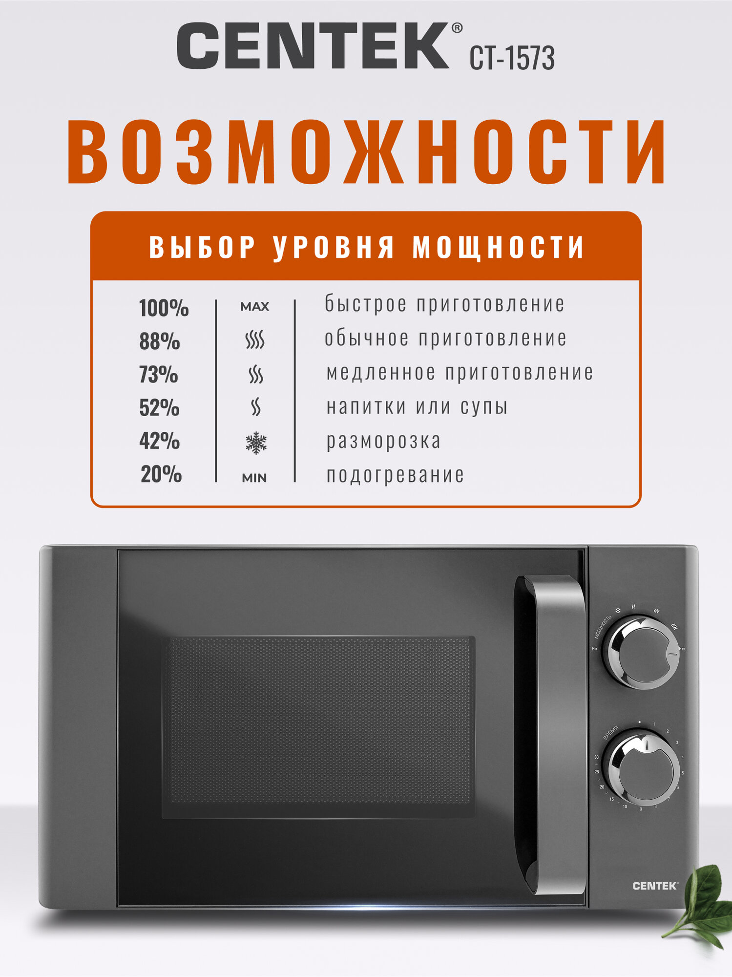 Микроволновая печь CENTEK CT-1573: без поворотного стола, 20л, легкая очистка, серый графит, микроволновка СВЧ информация: