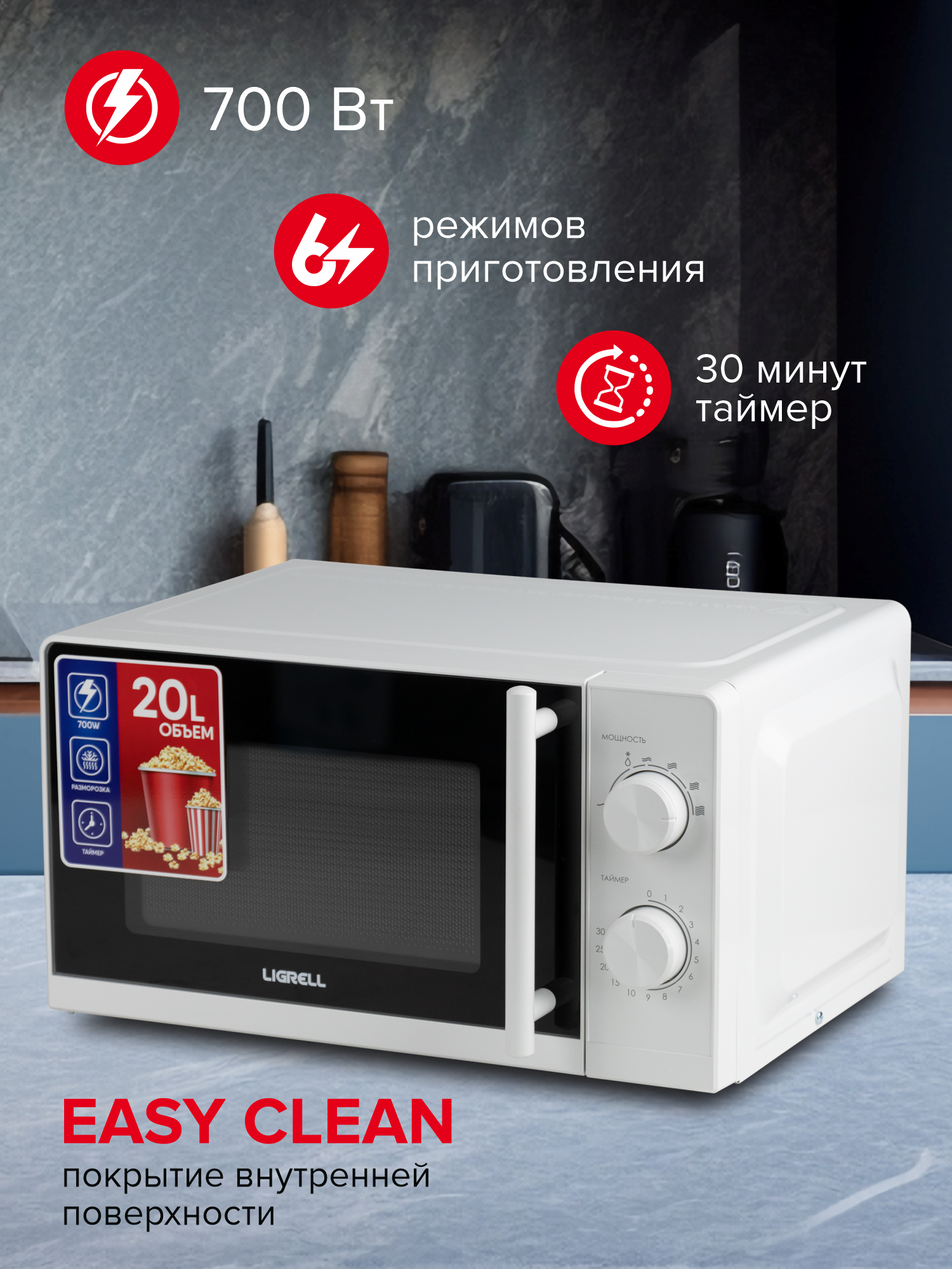 10 цен на Микроволновая печь Ligrell LMO-20M1B, 700Вт, эмаль, 20л, белая