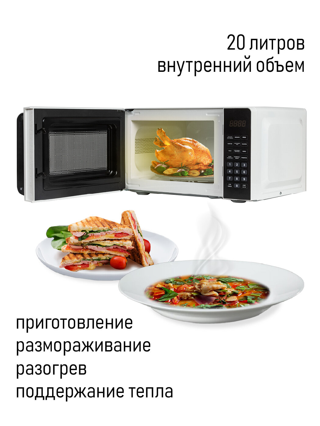 Печь микроволновая JVC JK-MW120M, 20 л, 700 Вт, механическое управление, белая