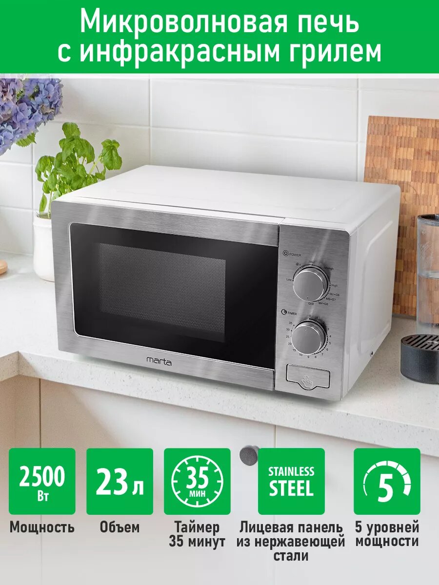 Отзывы на Микроволновка микроволновая печь СВЧ MARTA MT-MW4703B гриль белый/хром 23 л