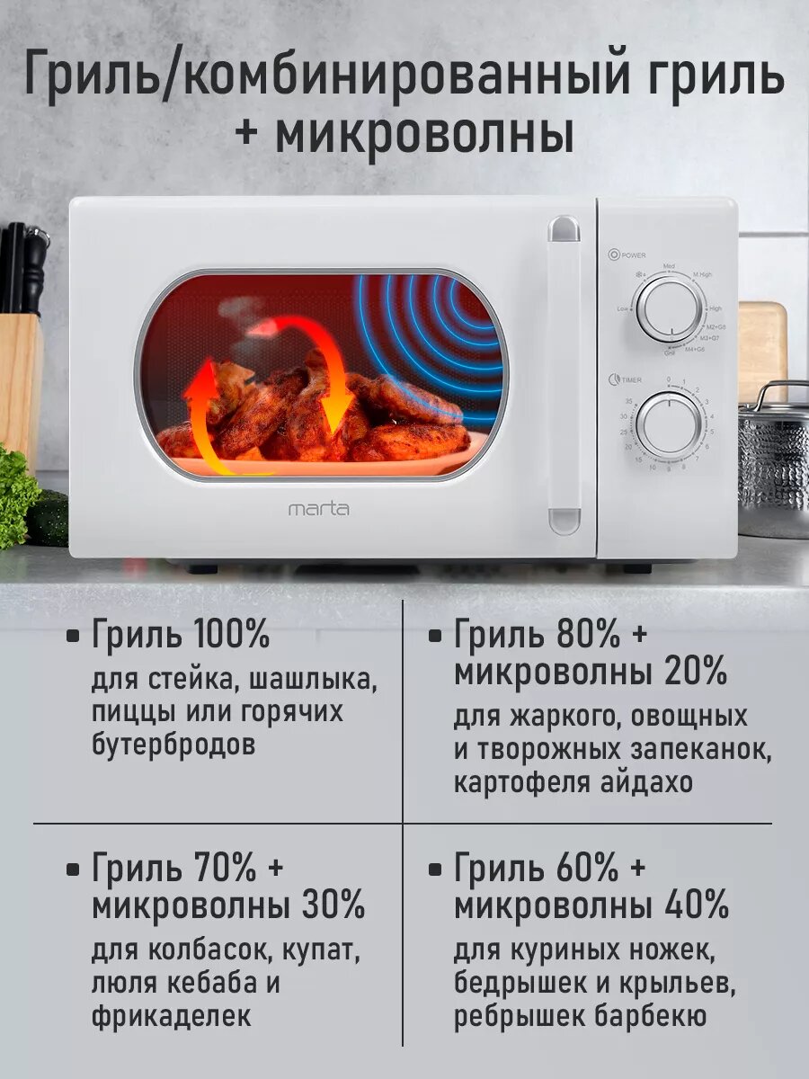 Отзывы на Микроволновка микроволновая печь СВЧ MARTA MT-MW4701A гриль белый 23 л