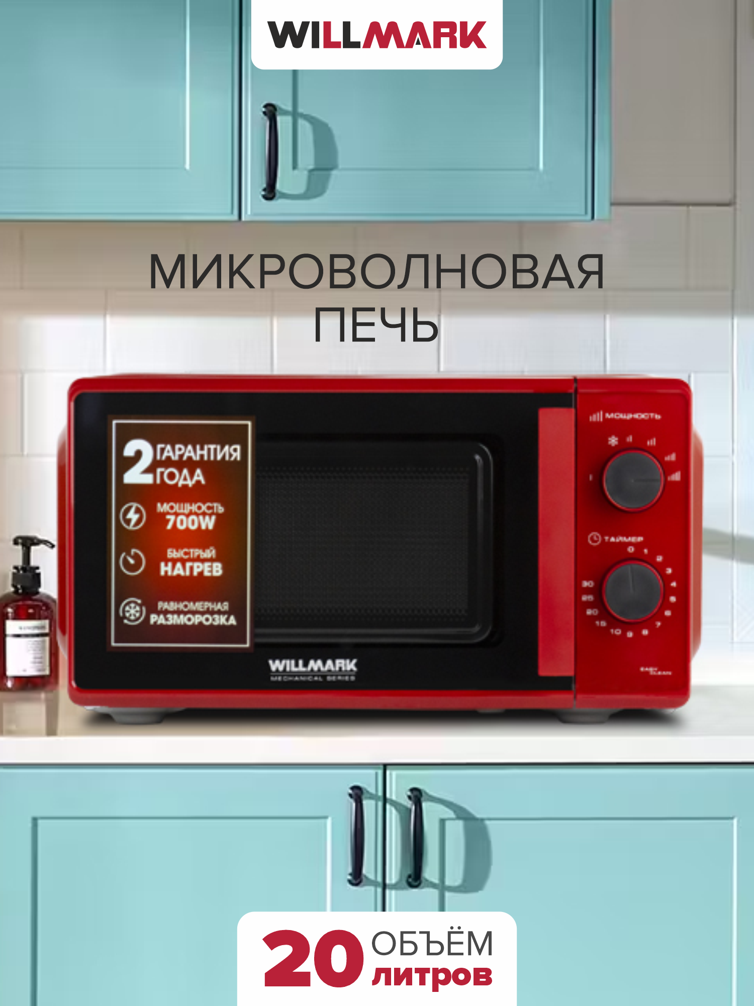Микроволновая печь Willmark WMO-203GMW, эмаль, 20 литров, 700Вт, поворотные переключатели информация: