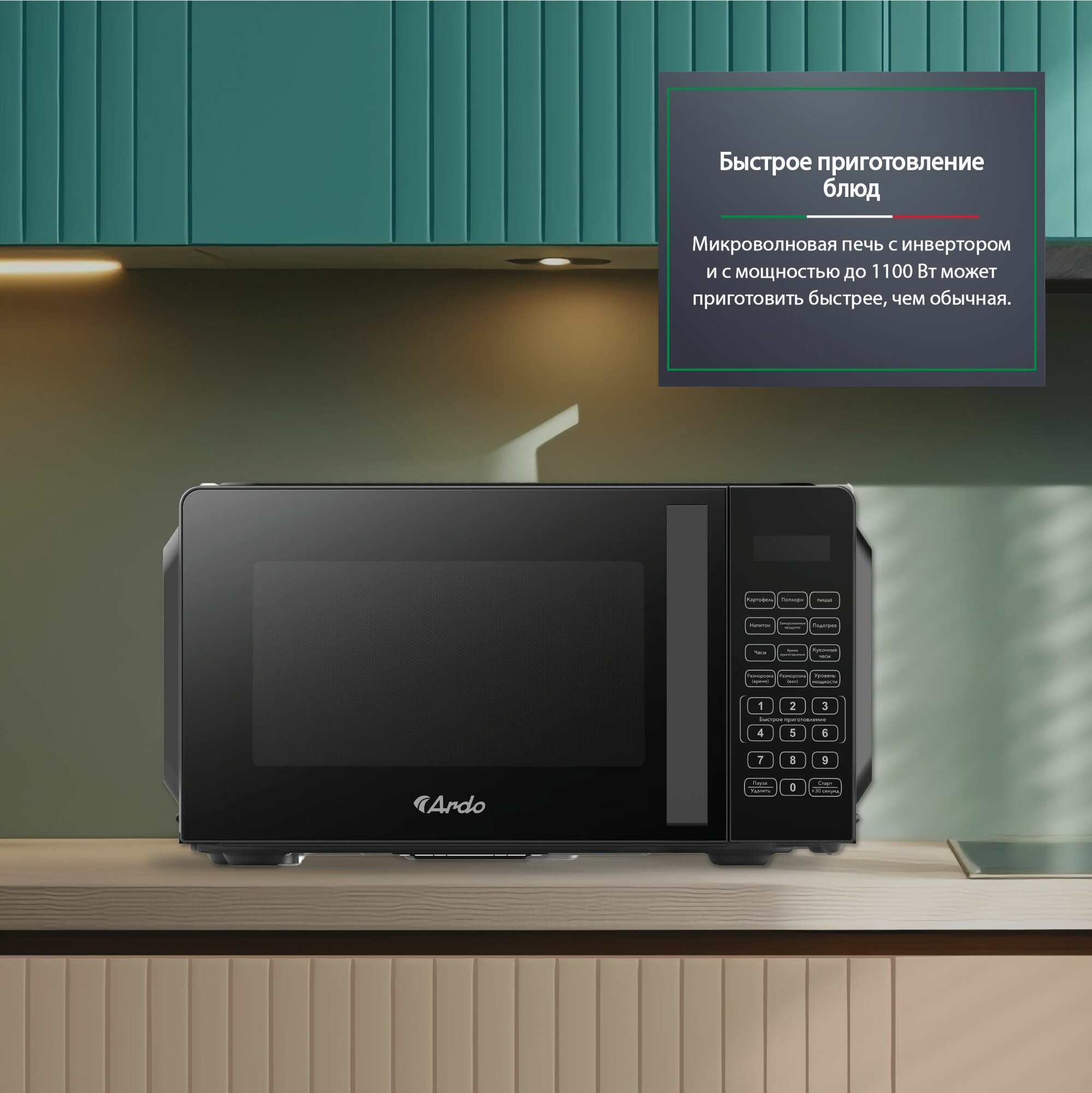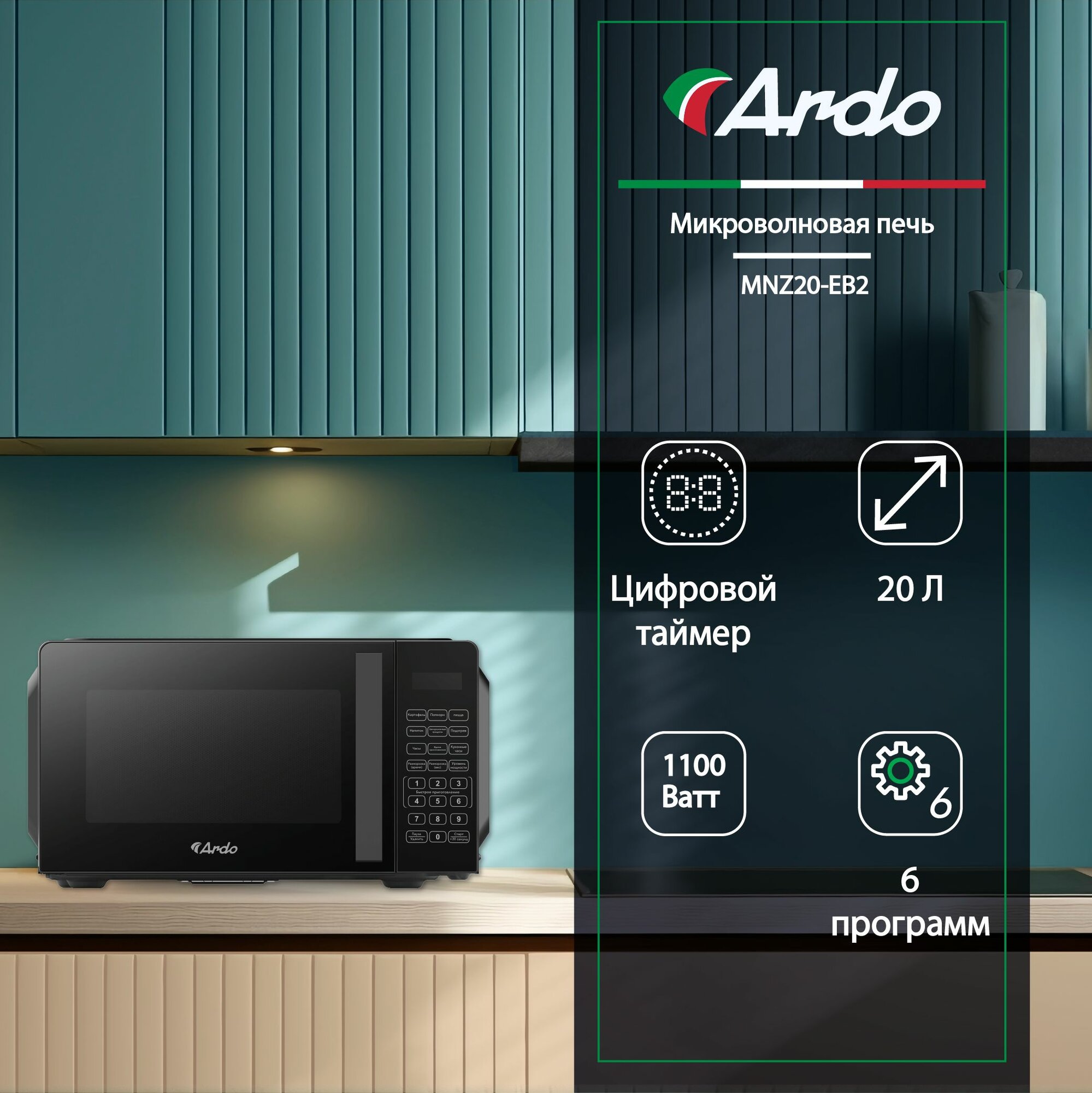 Микроволновая печь Ardo MNZ20-EB2, 6 программ, мощность 1100 Вт, черная информация: