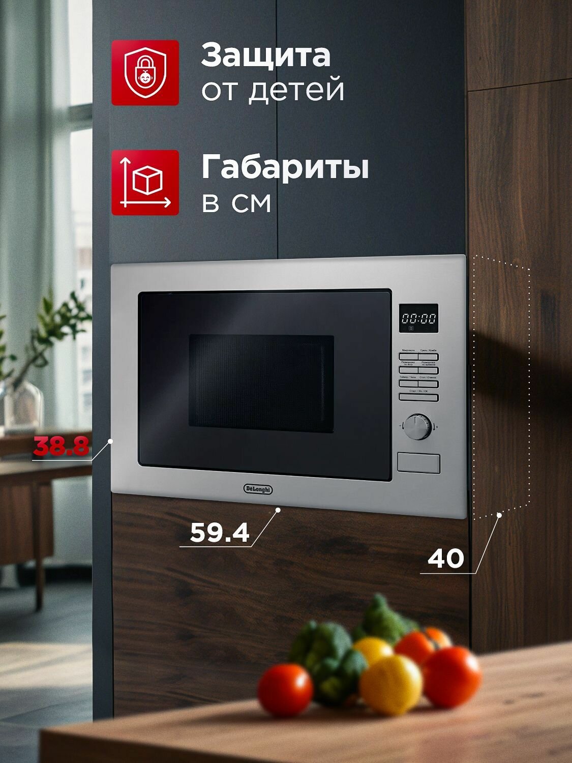 Отзывы на Встраиваемая микроволновая печь Delonghi DMO 25IM TORINO, с грилем, автопрограммами и умной разморозкой, серебристый