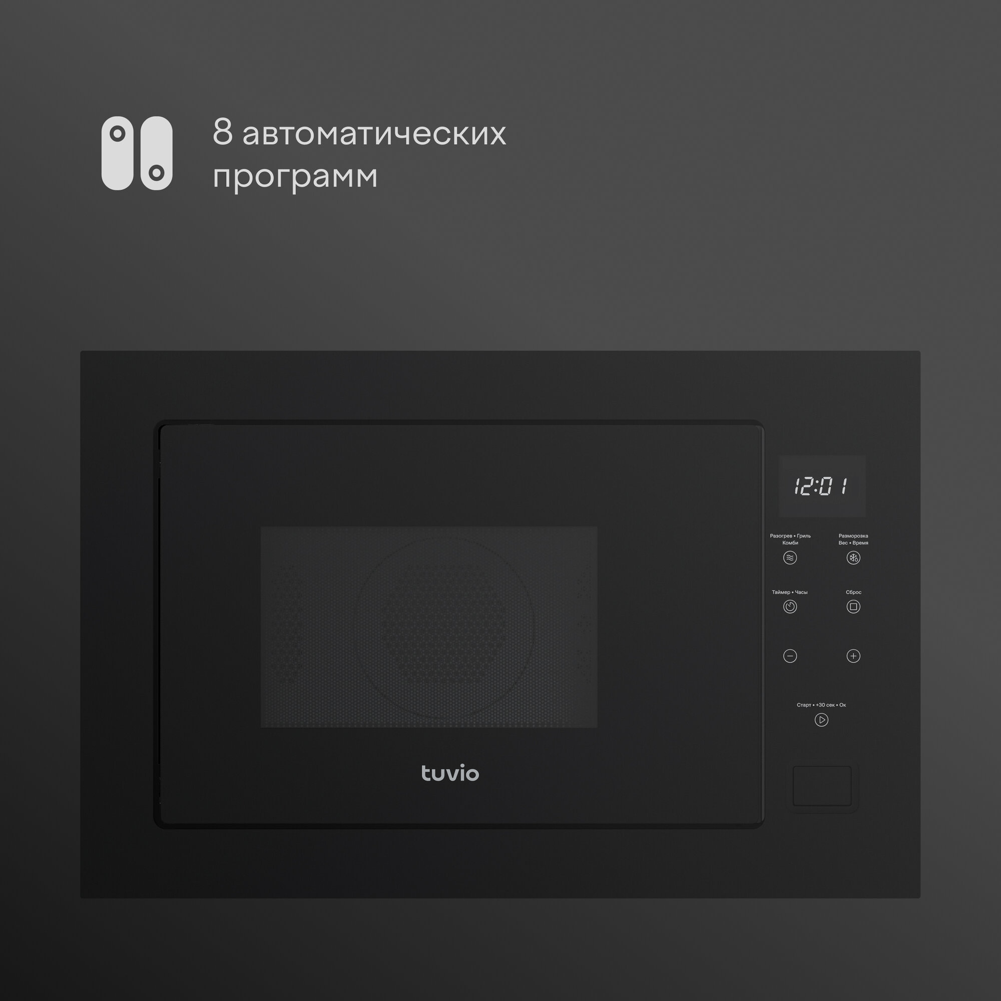 Встраиваемая микроволновая печь с функцией гриля и разморозки Tuvio MB25GTS9B11, черный