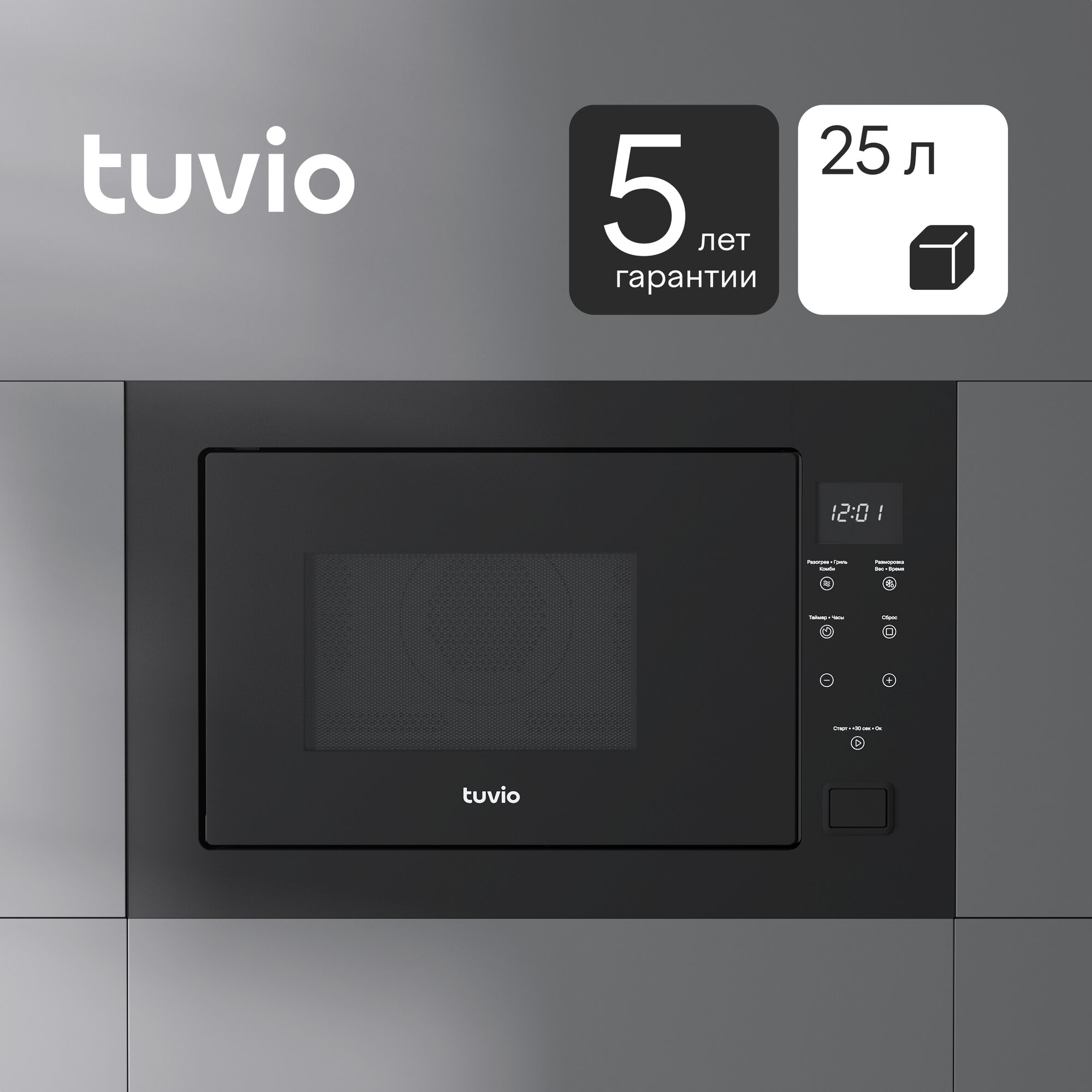 Встраиваемая микроволновая печь с функцией гриля и разморозки Tuvio MB25GTS9B11, черный информация: