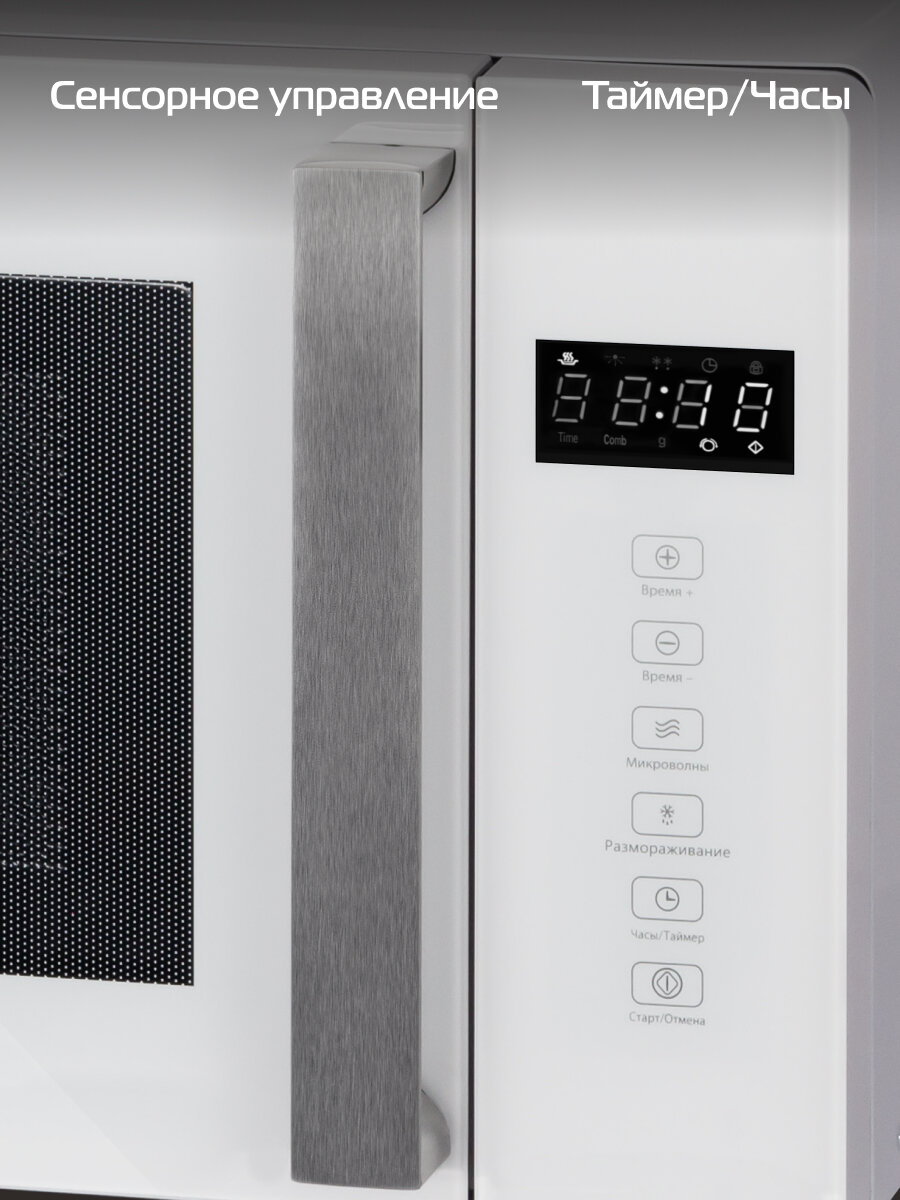 Микроволновая печь HIBERG i-VM 4088 W, СВЧ, инвертор, поворотный стол, 20 л, мощность 800 Вт, сенсорная, белое стекло информация: