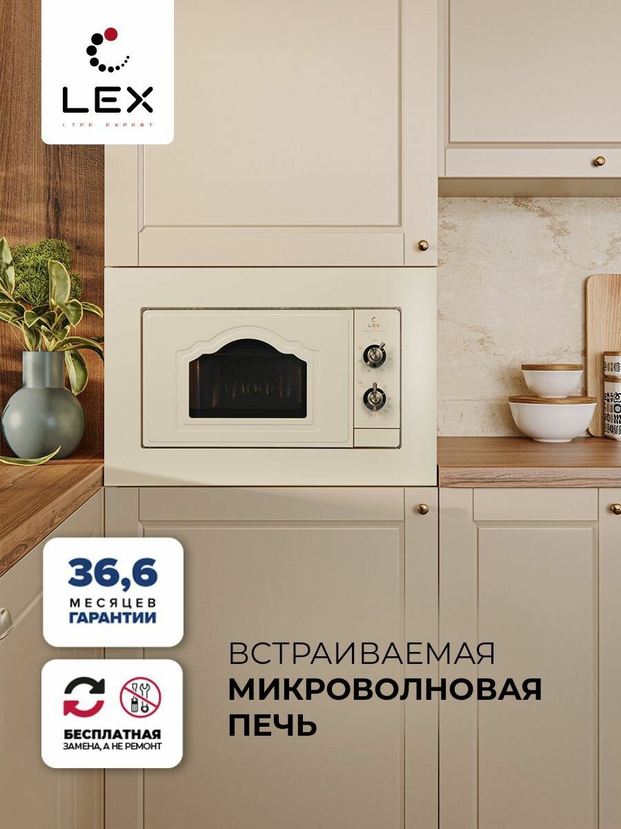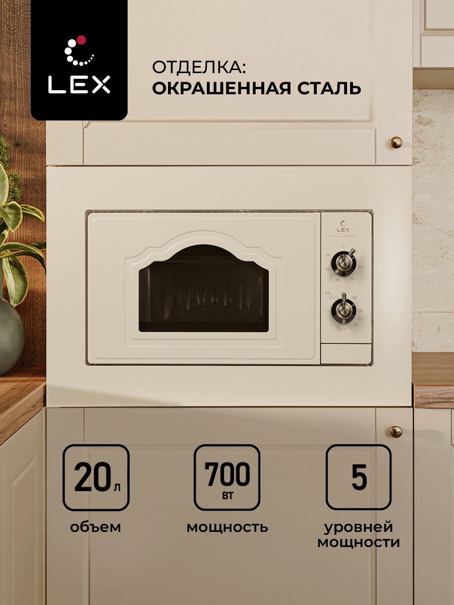 10 цен на Встраиваемая микроволновая печь LEX BIMO 20.04 IV, Блокировка управления, Звуковой сигнал, Таймер