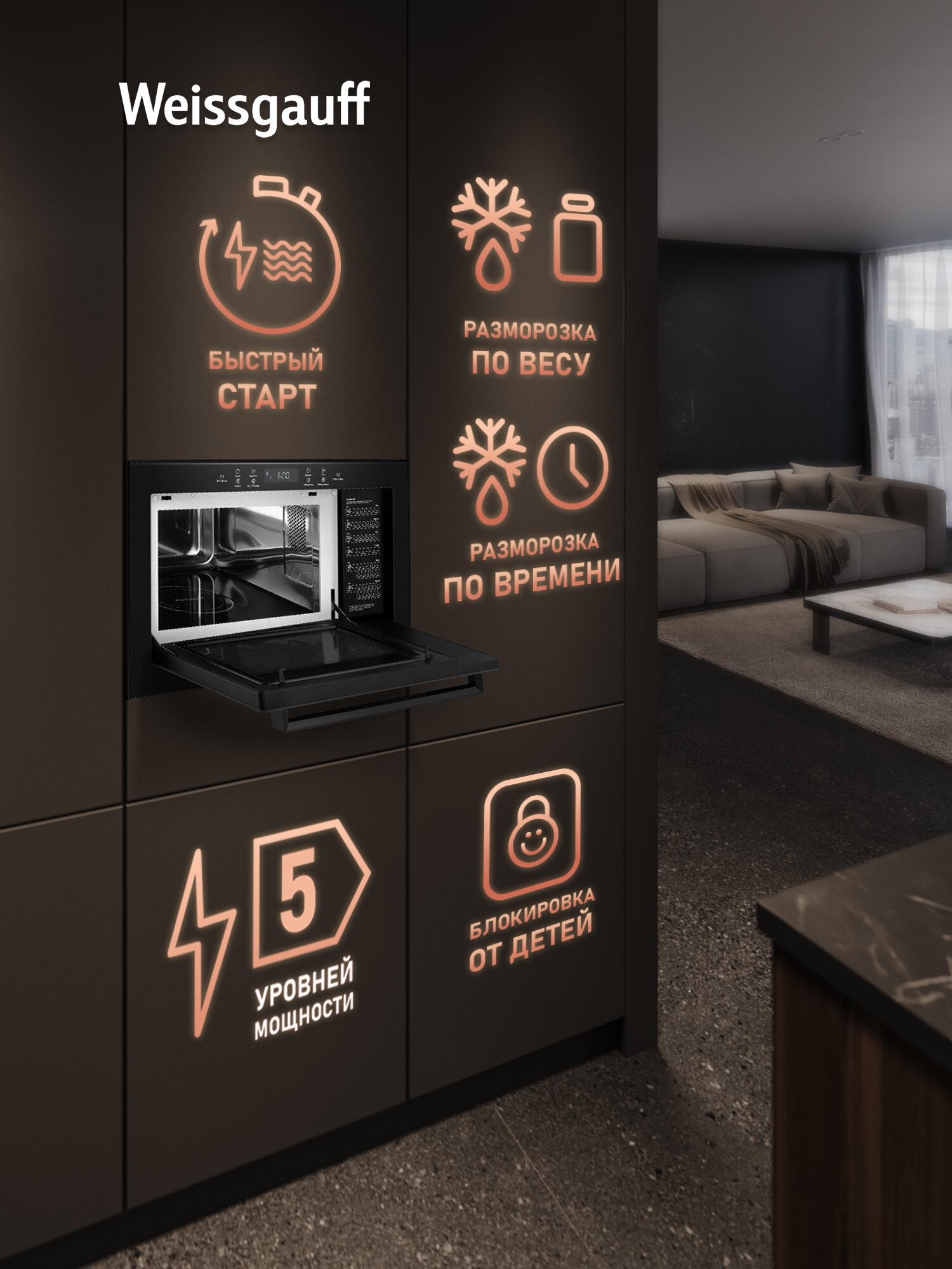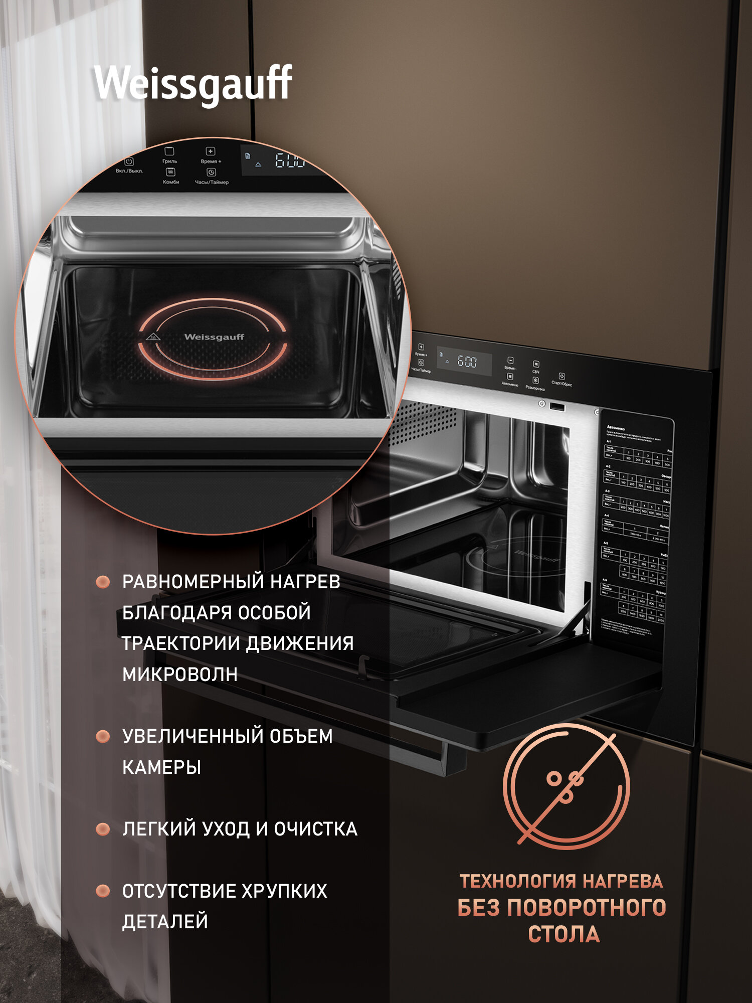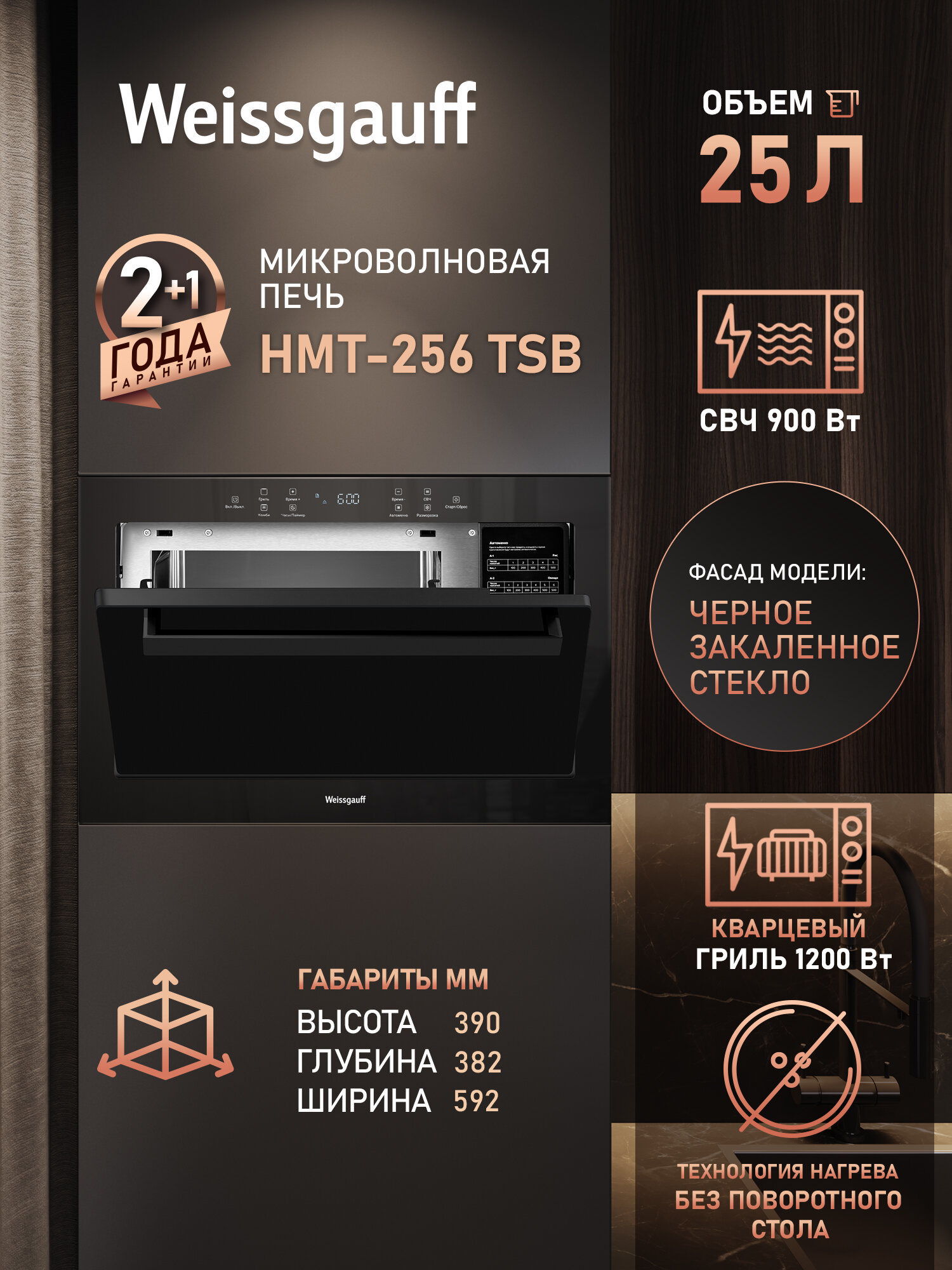 Встраиваемая микроволновая печь без поворотного стола Weissgauff HMT-256 TSB информация: