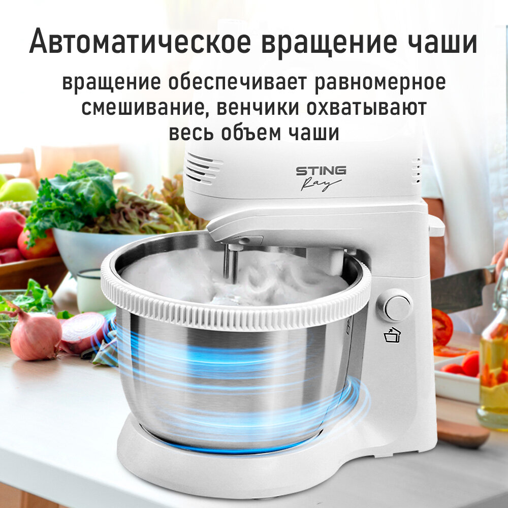 10 цен на Миксер кухонный стационарный STINGRAY ST-MX2014A белый мрамор