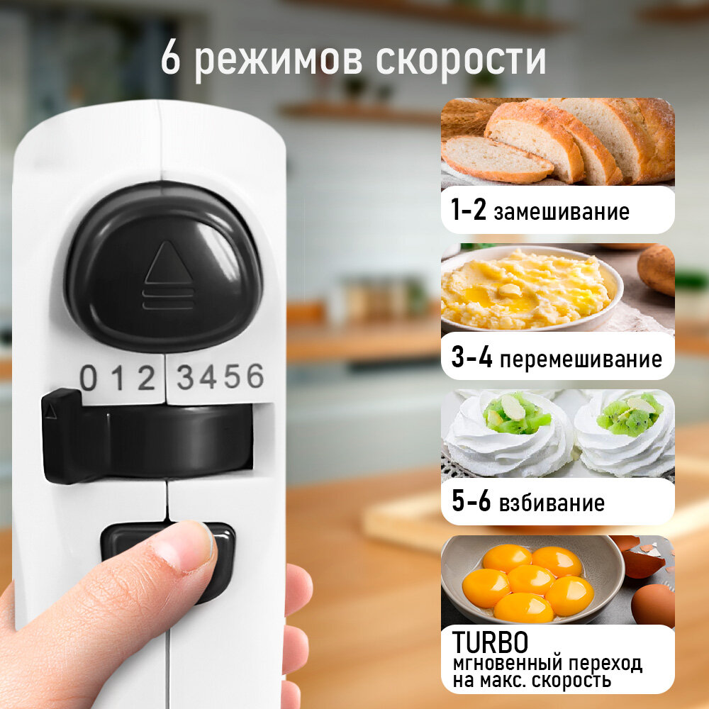 Миксер ручной STINGRAY ST-MX2017A, мощность 1200 Вт, 5 скоростей, белый 938 ₽