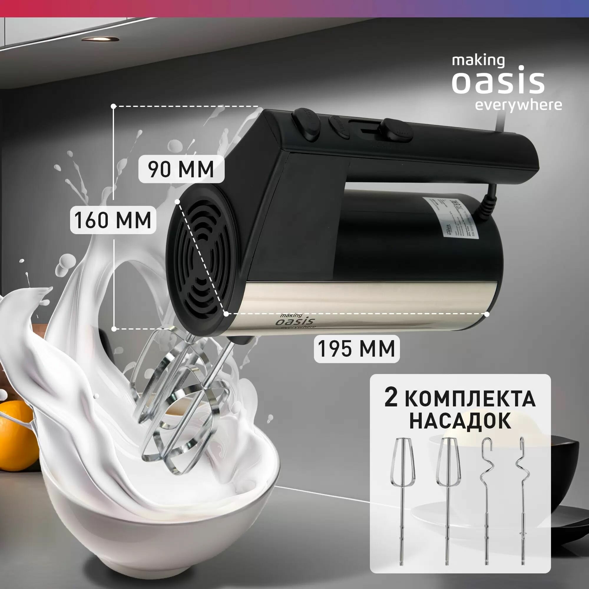Миксер Oasis MH-60S серебристый, ручной, мощность 600 в, корпус пластик, сетевой шнур 1.1 м информация: