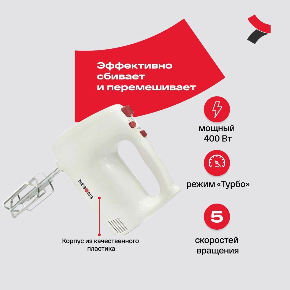 Миксер ручной электрический NESONS NS-HM1403 белый информация: