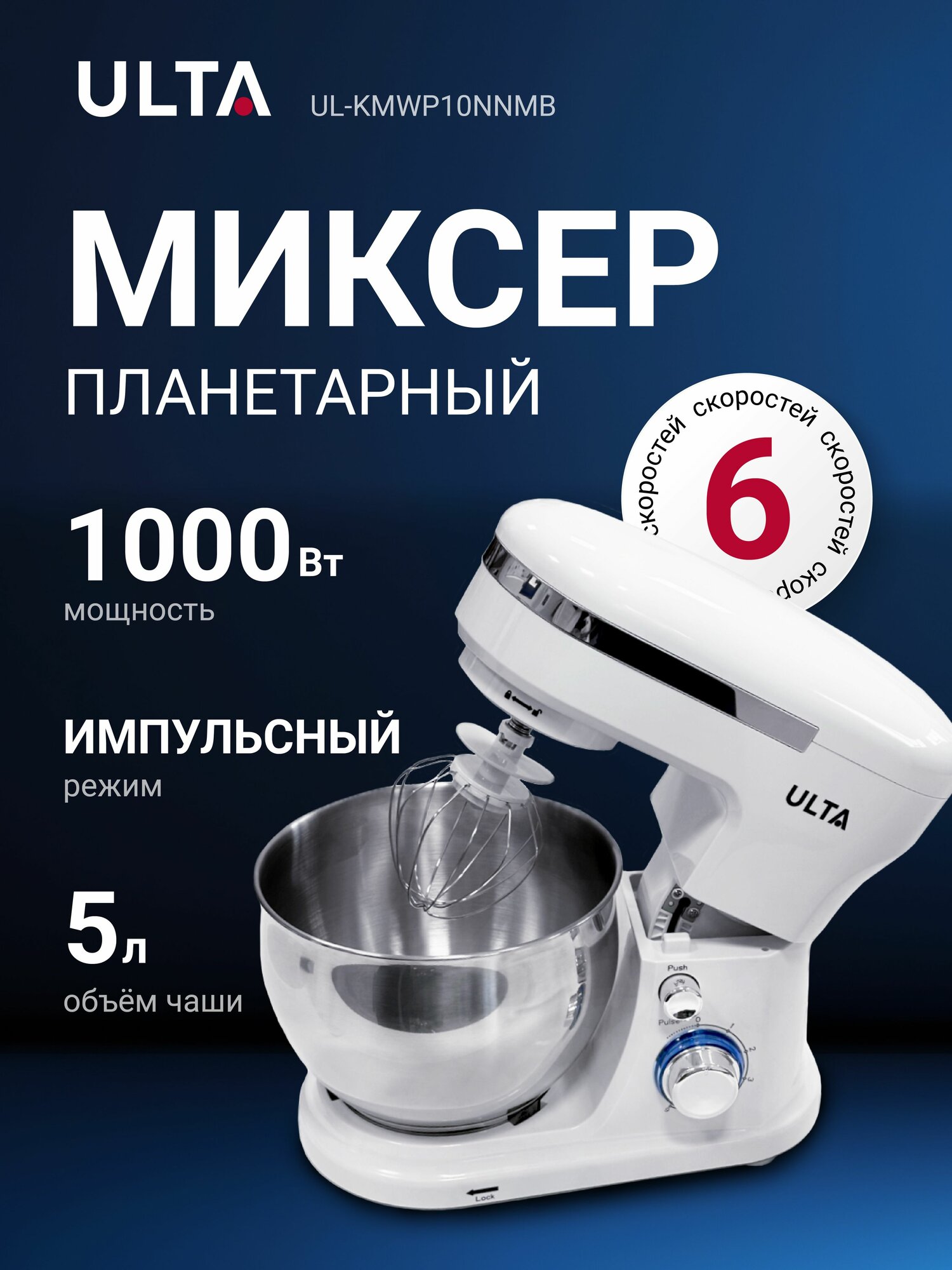 10 цен на Планетарный миксер кухонный тестомес электрический с чашей Ulta UL-KMWP10NNMB Белый
