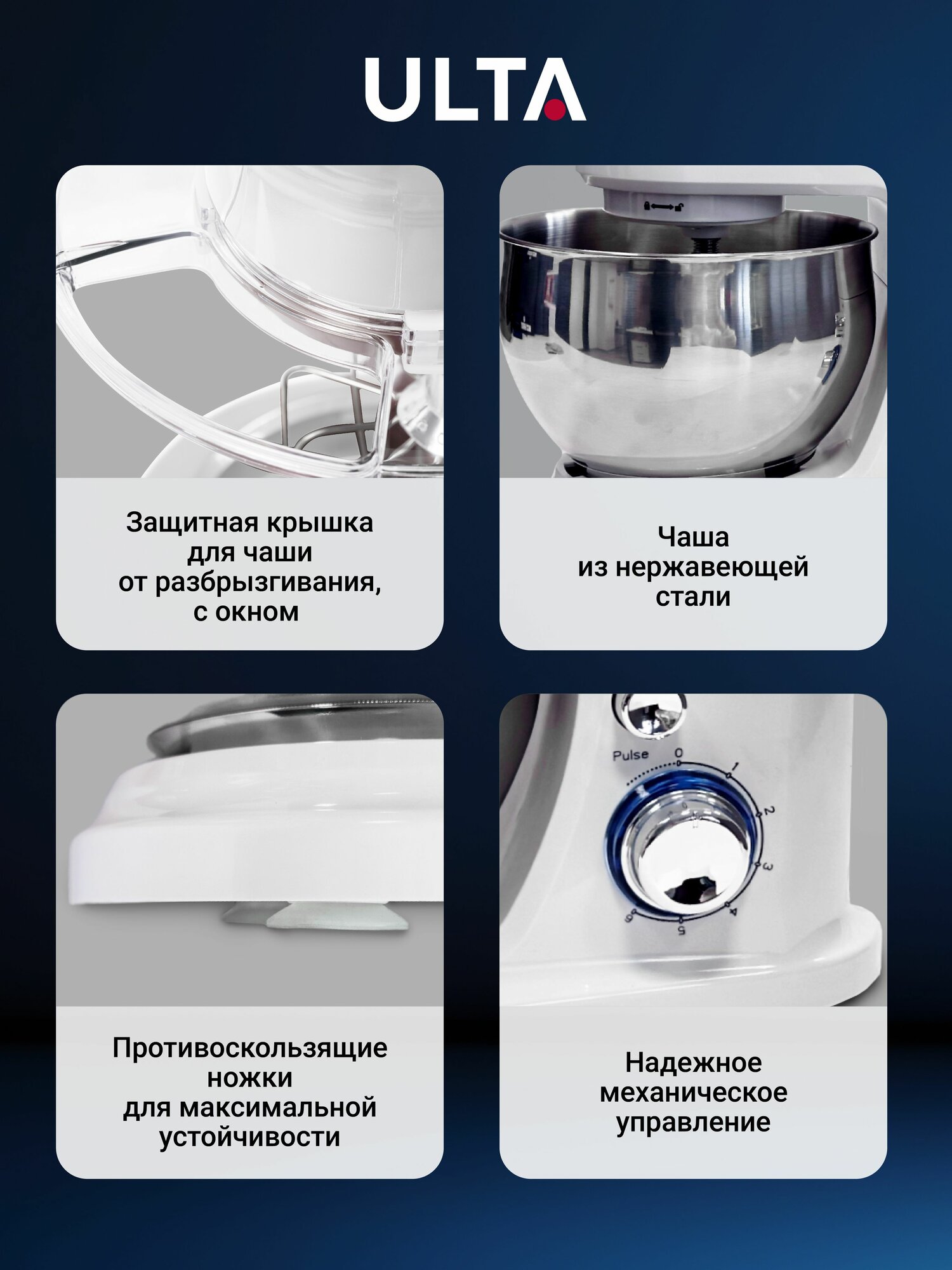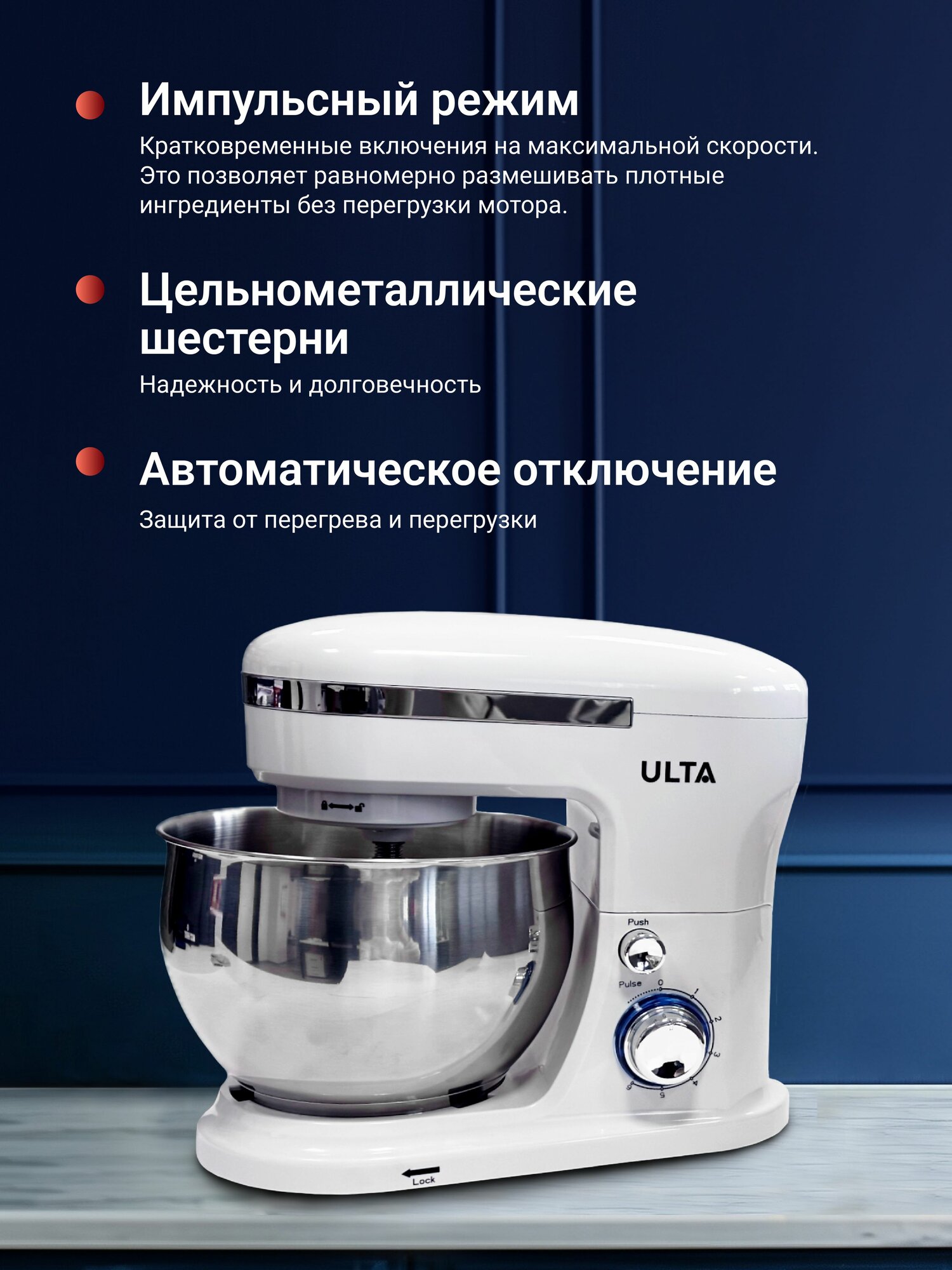 Планетарный миксер кухонный тестомес электрический с чашей Ulta UL-KMWP10NNMB Белый информация: