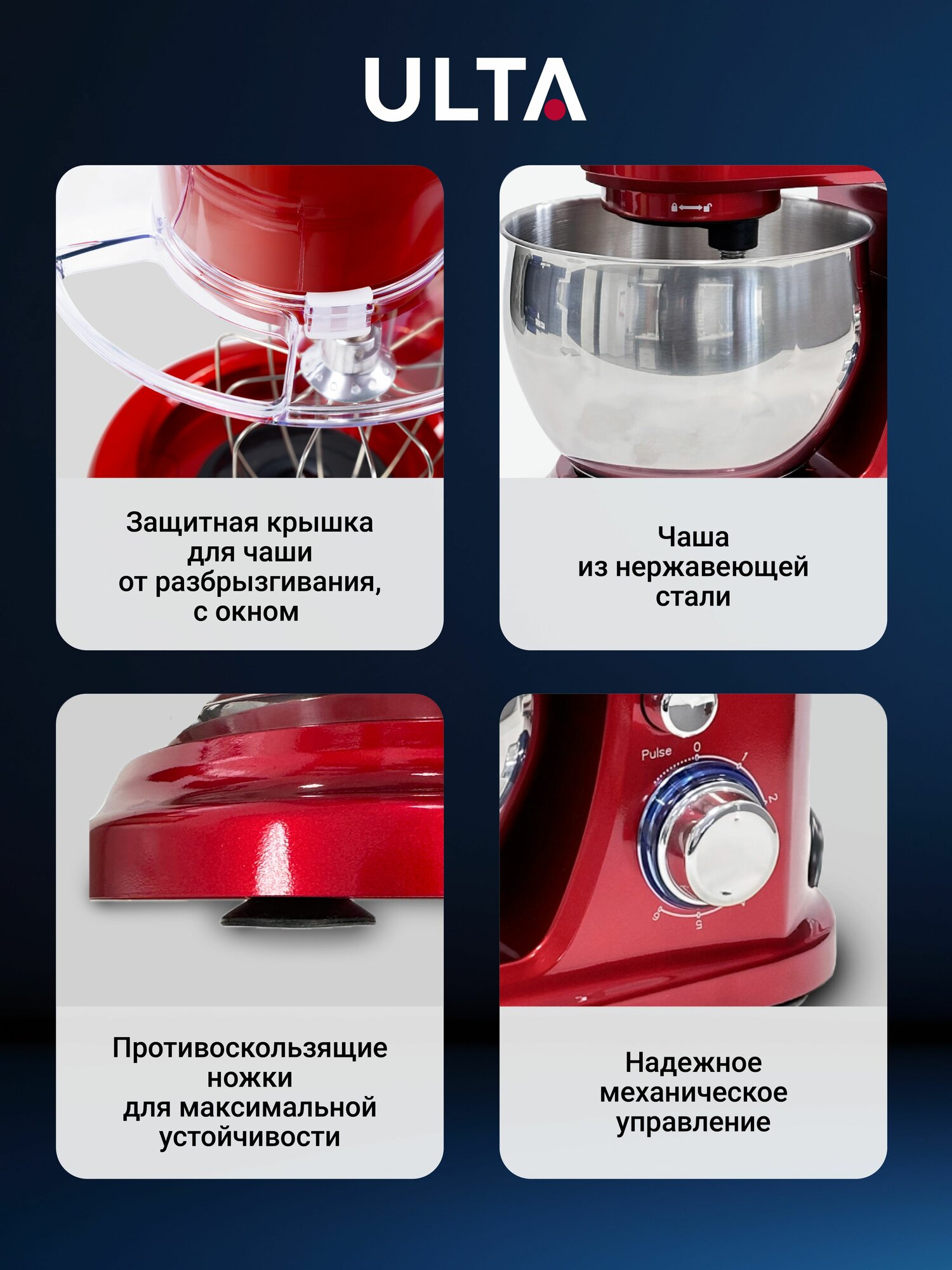 Планетарный миксер кухонный тестомес электрический с чашей Ulta UL-KMRP10NNMB Красный информация: