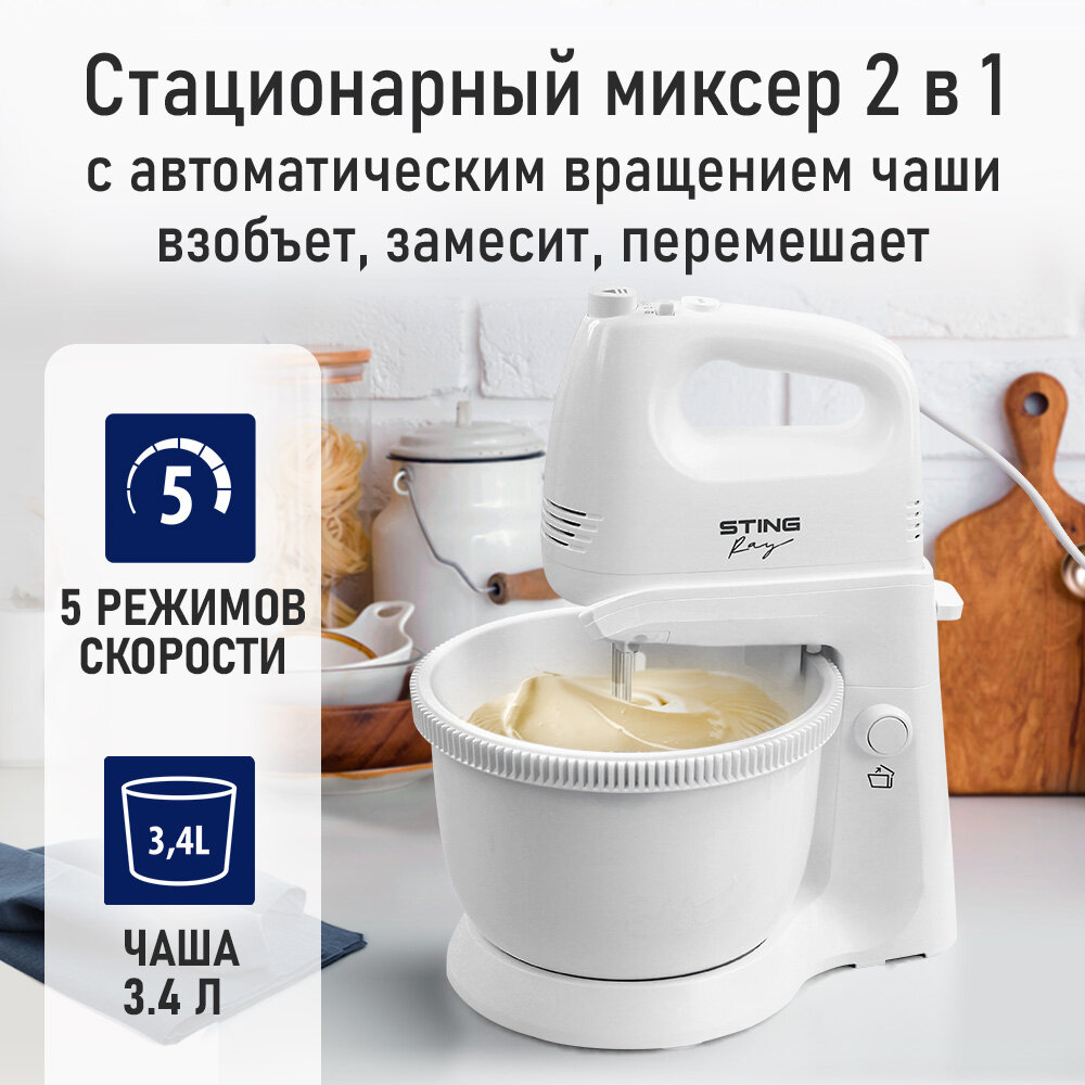 Отзывы на Миксер кухонный стационарный STINGRAY ST-MX2014B белый мрамор с чашей