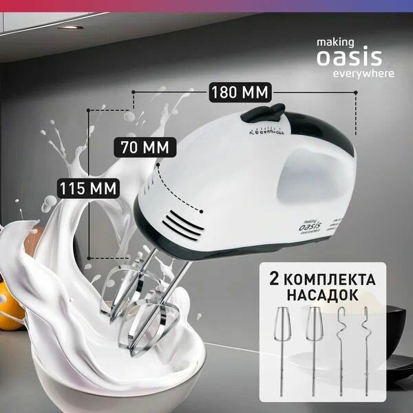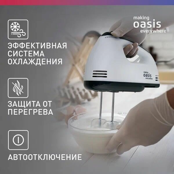 Отзывы на Миксер ручной OASIS MH-30W, белый, 300 Вт, 7 скоростей, заводская, полная