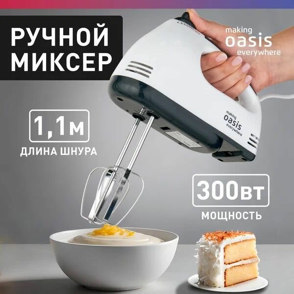 Миксер ручной OASIS MH-30W, белый, 300 Вт, 7 скоростей, заводская, полная информация:
