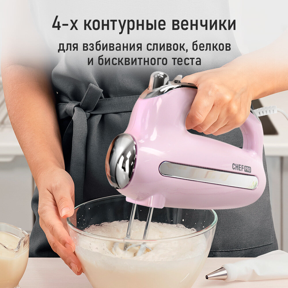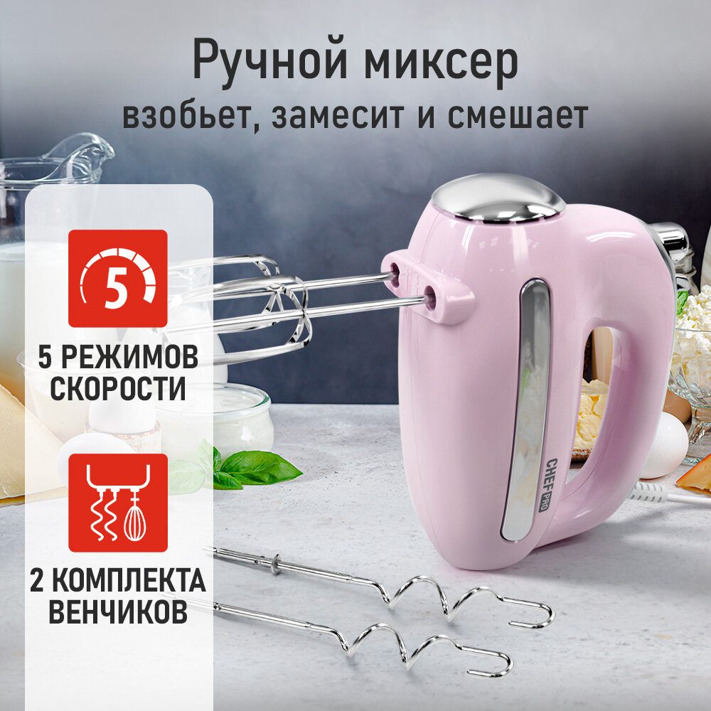 Миксер ручной CHEF PRO CF-MX1307A розовый опал информация:
