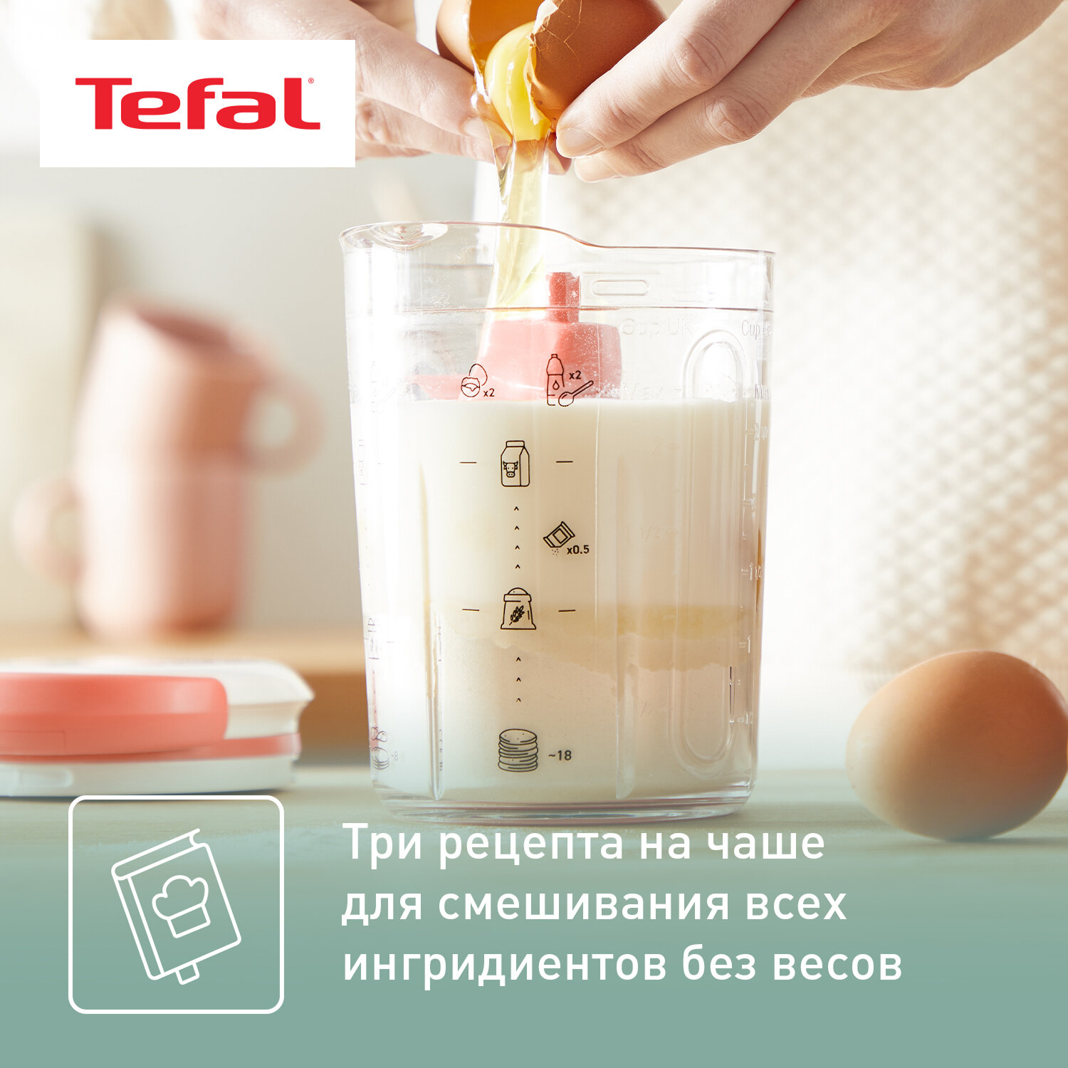Миксер для теста Tefal Pancake Express K1844404 для приготовления теста для блинов за 2 минуты, 3 рецепта информация: