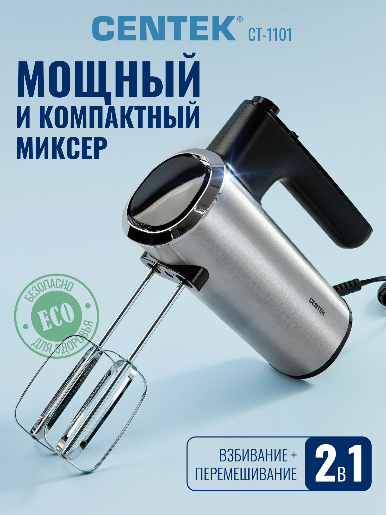 10 цен на Миксер ручной Centek CT-1101 мощность 800Вт, 5 скоростей, турбо режим, серый