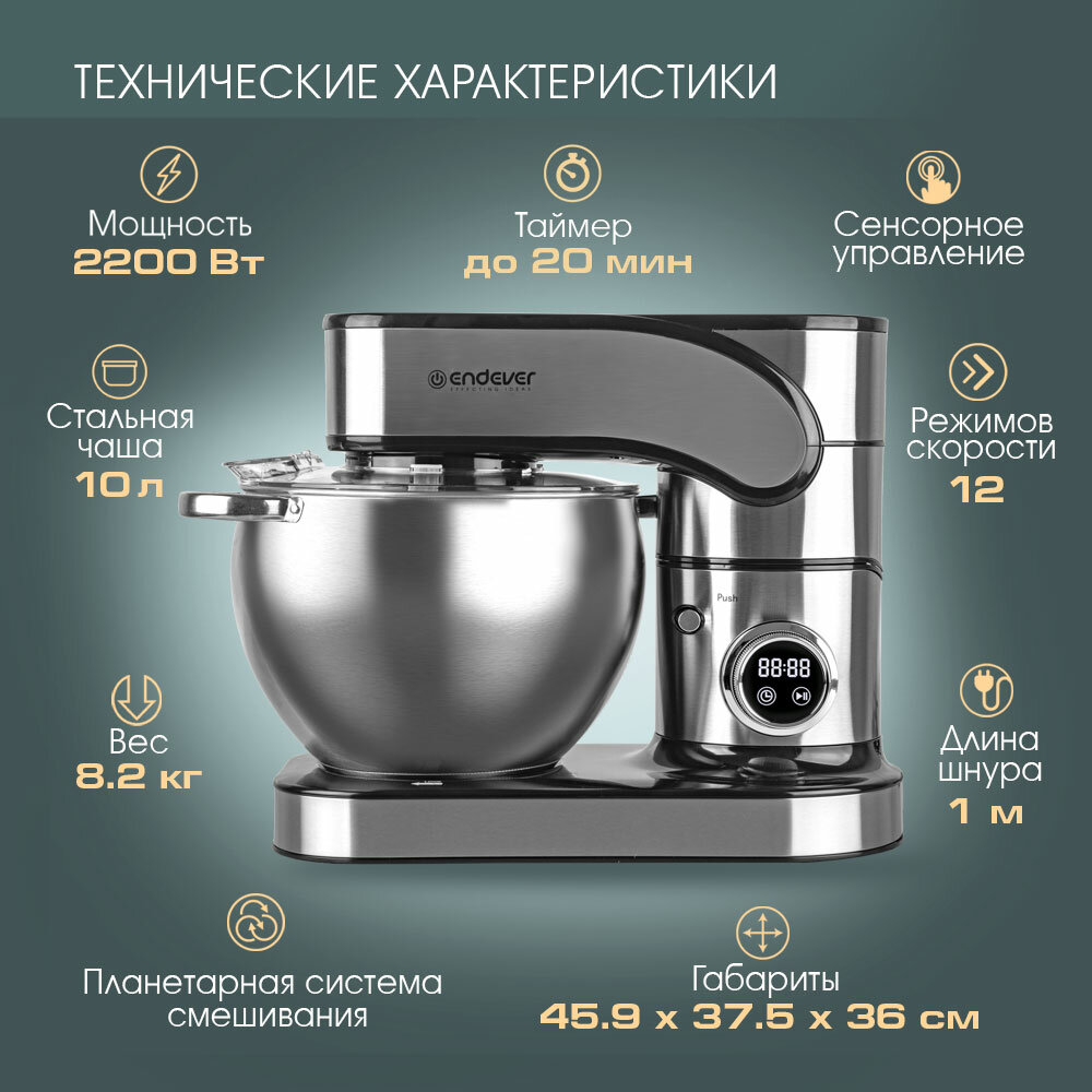 Планетарный миксер с чашей 10 литров ENDEVER SIGMA-180 / 2200 Вт информация: