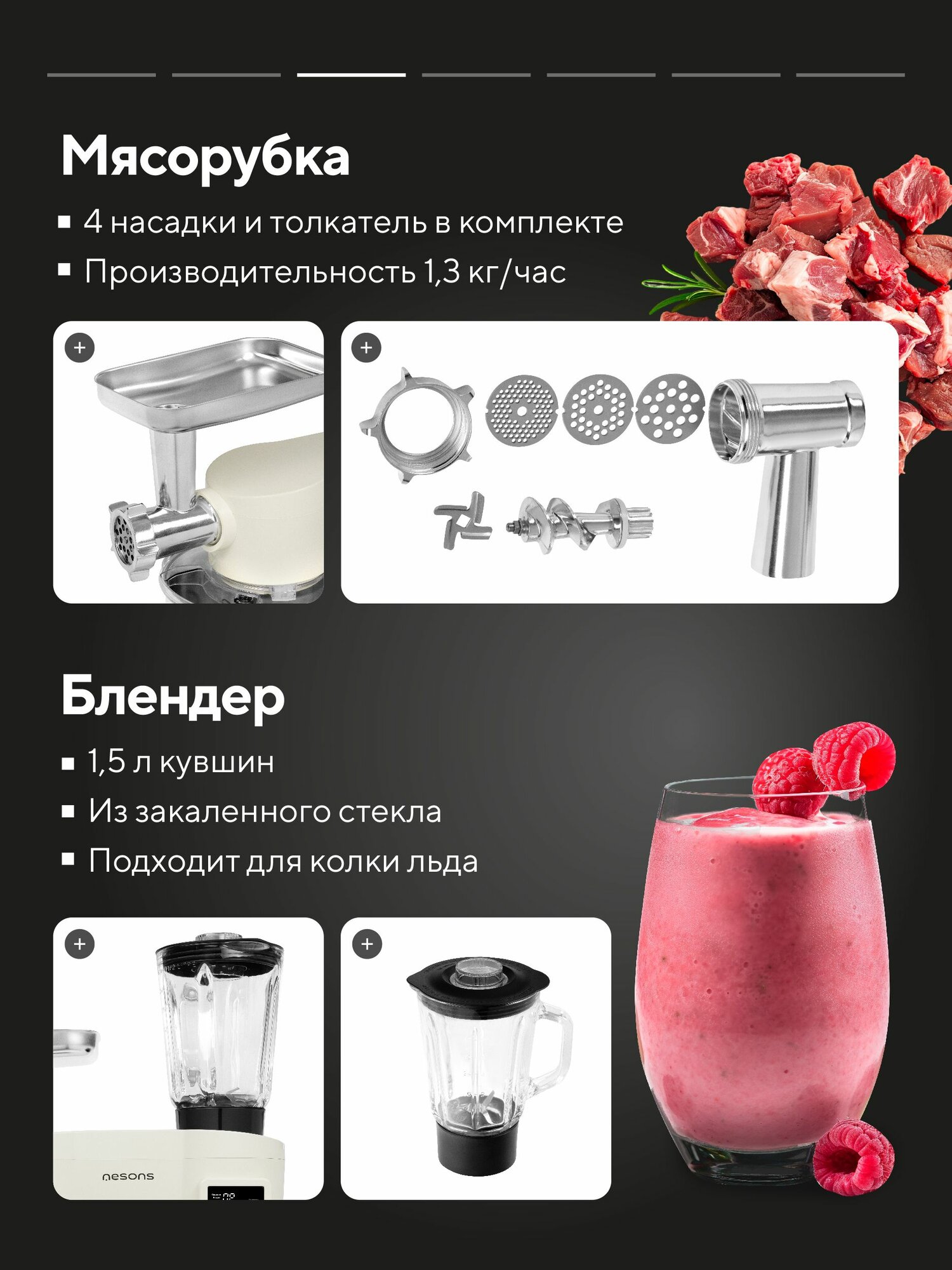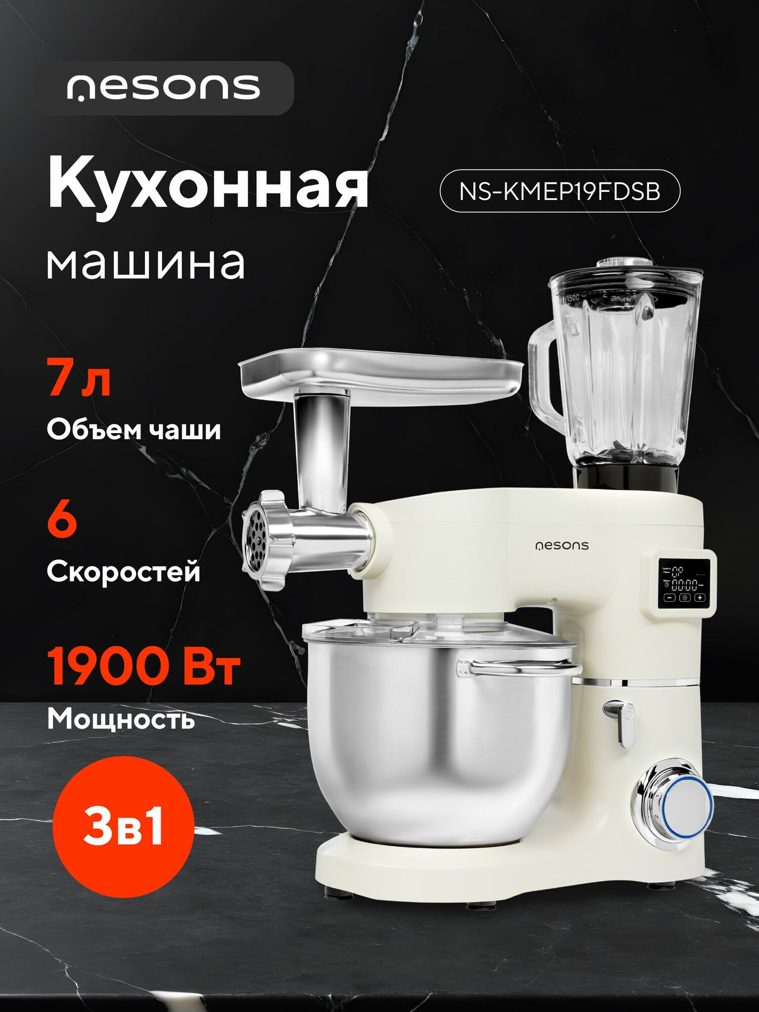 Миксер планетарный/ Кухонный комбайн 3 в 1 Nesons NS-NS-КMEP19FDSB с подогревом чаши информация: