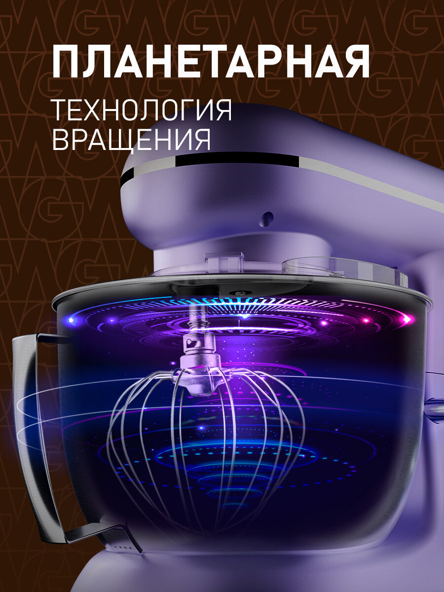 Миксер планетарный Weissgauff WSM 147 PDB Metal Gear Silent, Мощность 1900 Вт, 6 скоростей, Цифровой дисплей