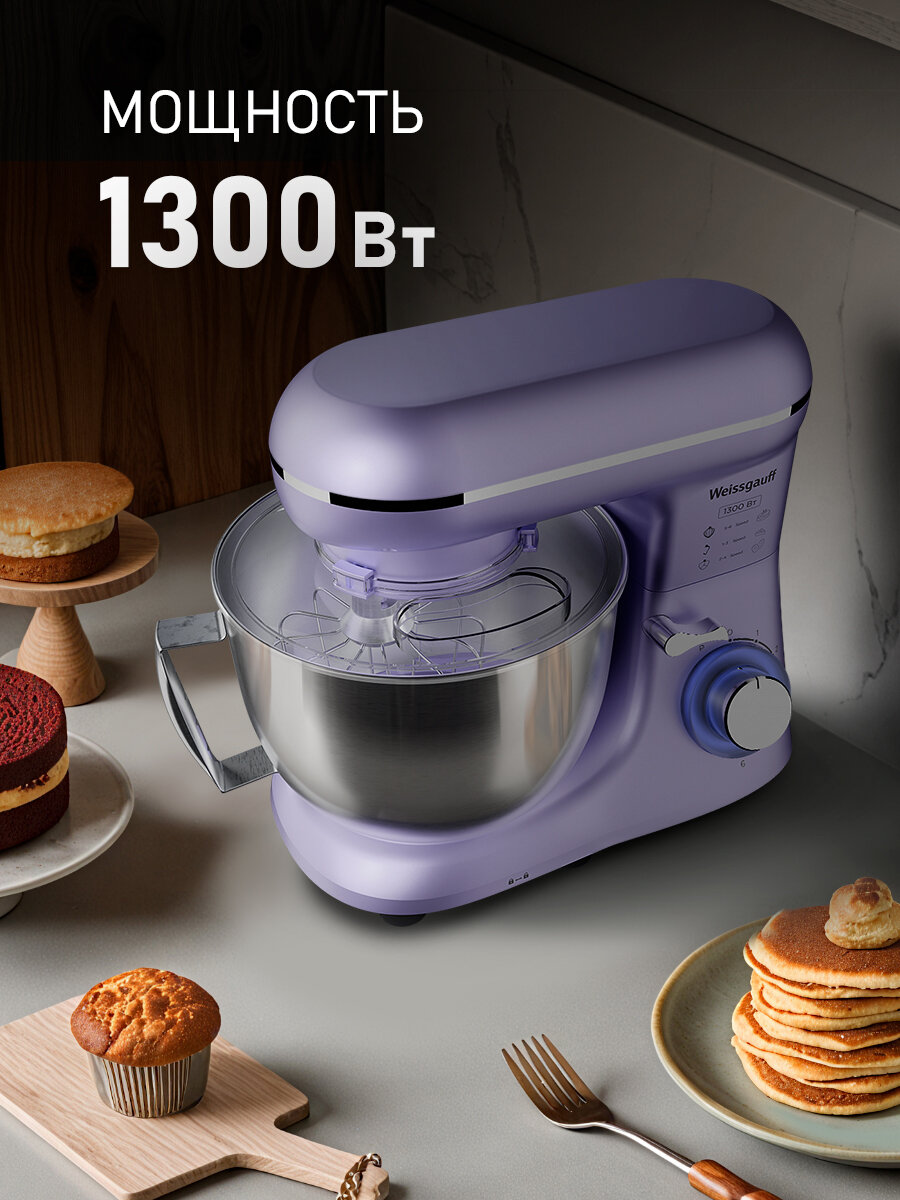 Миксер планетарный Weissgauff WSM 131 PML PrimeChef, Двигатель 1300 Вт, Металлические шестерни, 6 скоростей работы информация: