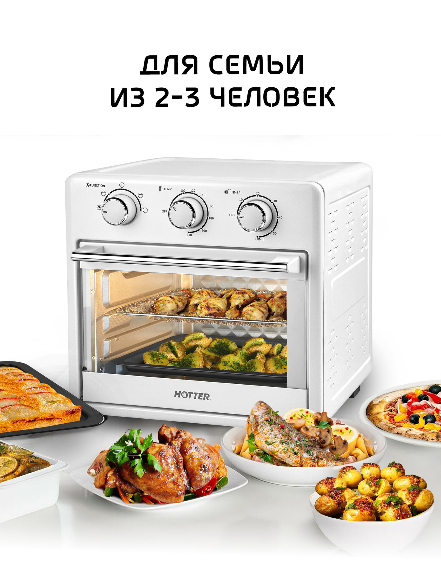 Отзывы на Духовка электрическая настольная с конвекцией HOTTER HX-16, мини печь- аэрогриль, 16 литров, 5 режимов, 1200 Вт, белая
