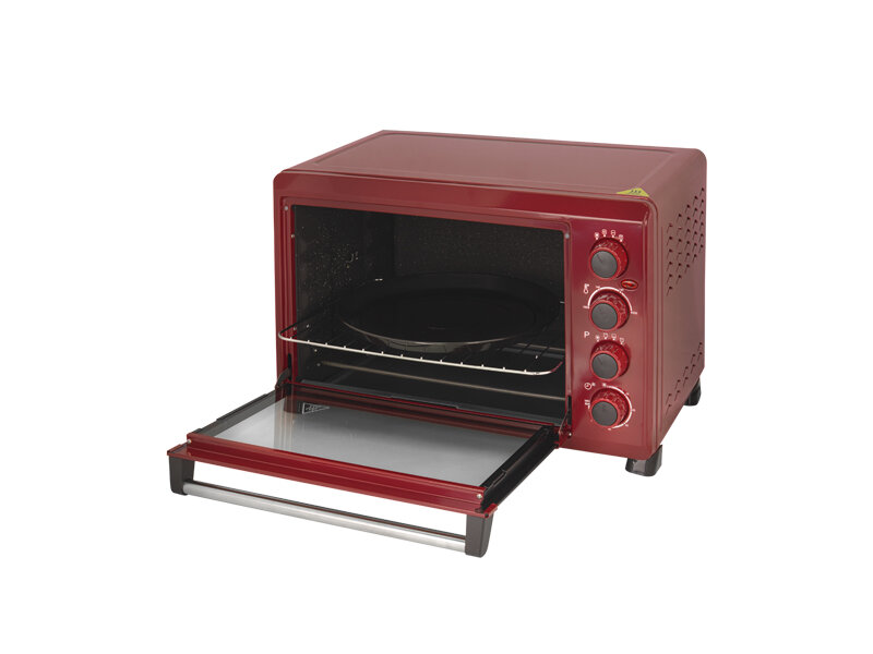 Мини-духовка Oursson "OV3815/RD", красная, внутренняя подсветка, с конвекцией и грилем , 38л