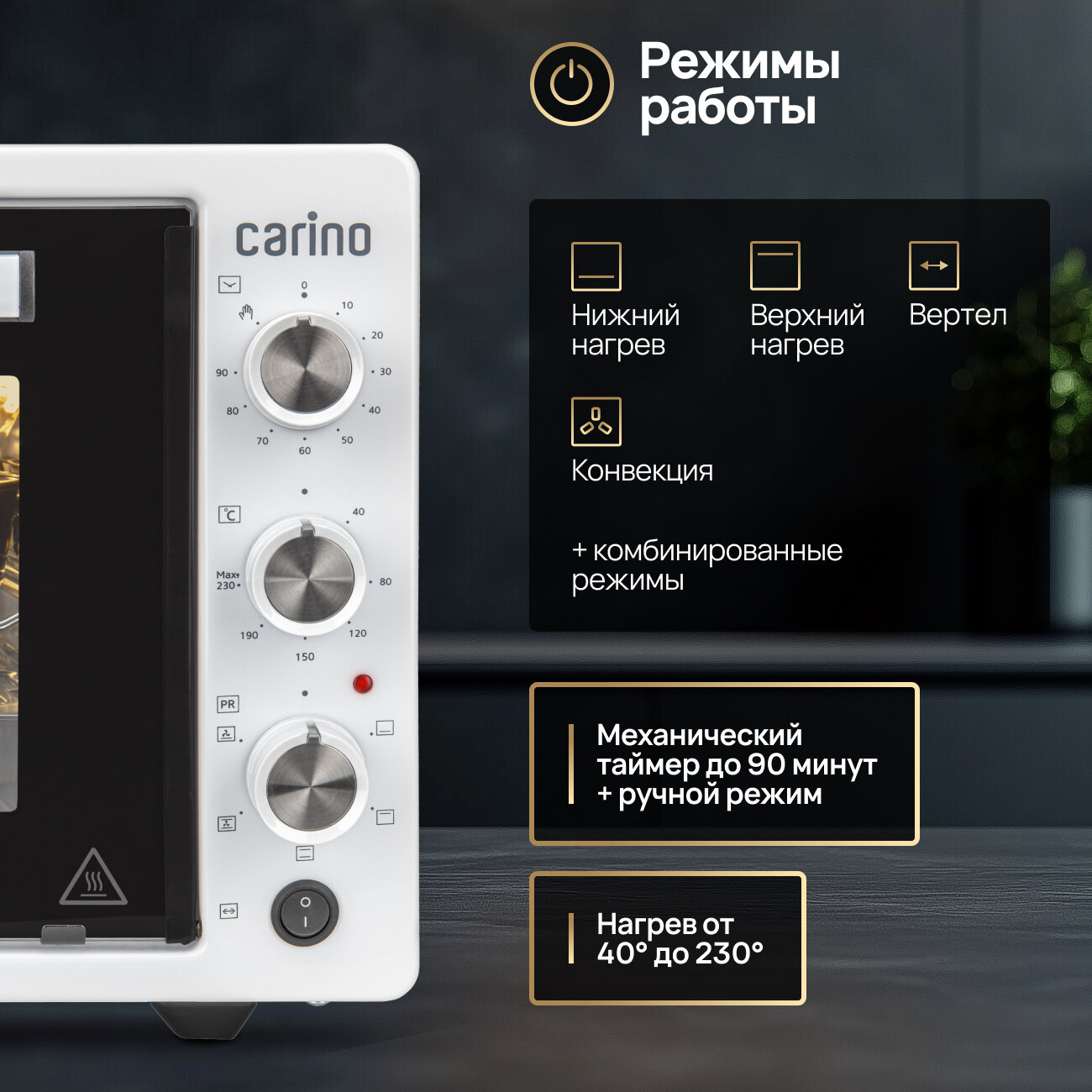 10 цен на Мини-печь CARINO CM4216, 5 режимов, 1300 Вт, 42л, цвет белый