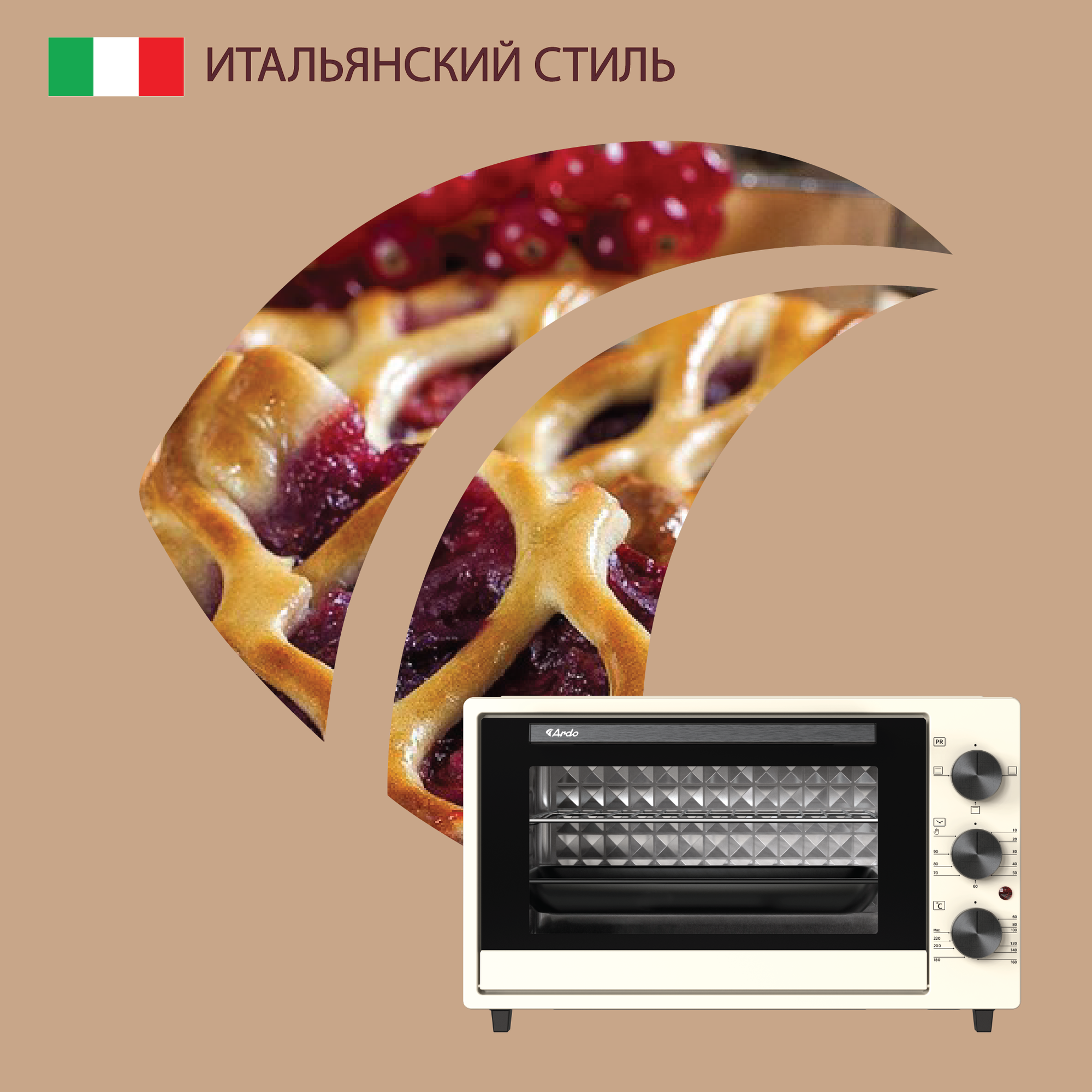 Мини-печь Ardo 3 режима, 45 л, 2 противня + хромированная решетка, механический таймер