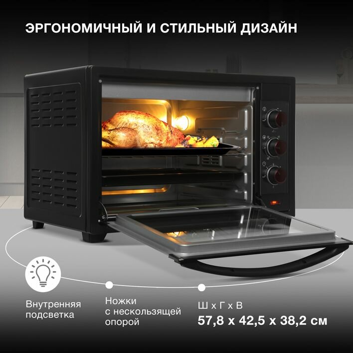 Мини-печь электрическая Hyundai MIO-HY102, черный, объем духовки 50 л, мощность 2000 Вт, 6 режимов работы с температурой от 100 до 250 С информация:
