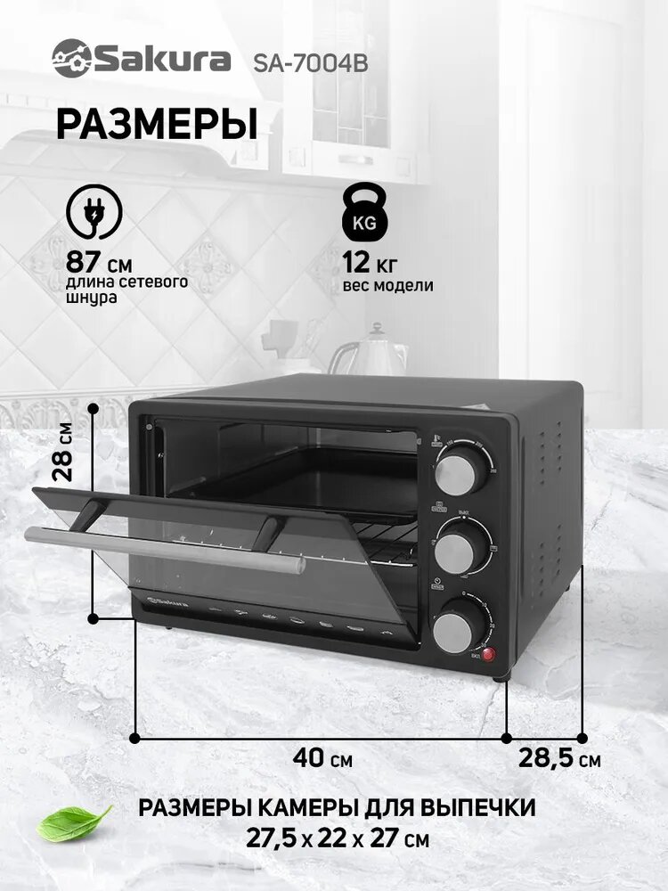 Духовка электрическая Sakura SA-7004B, черная, 18л, 1300Вт, механическое управление, 3 режима работы информация: